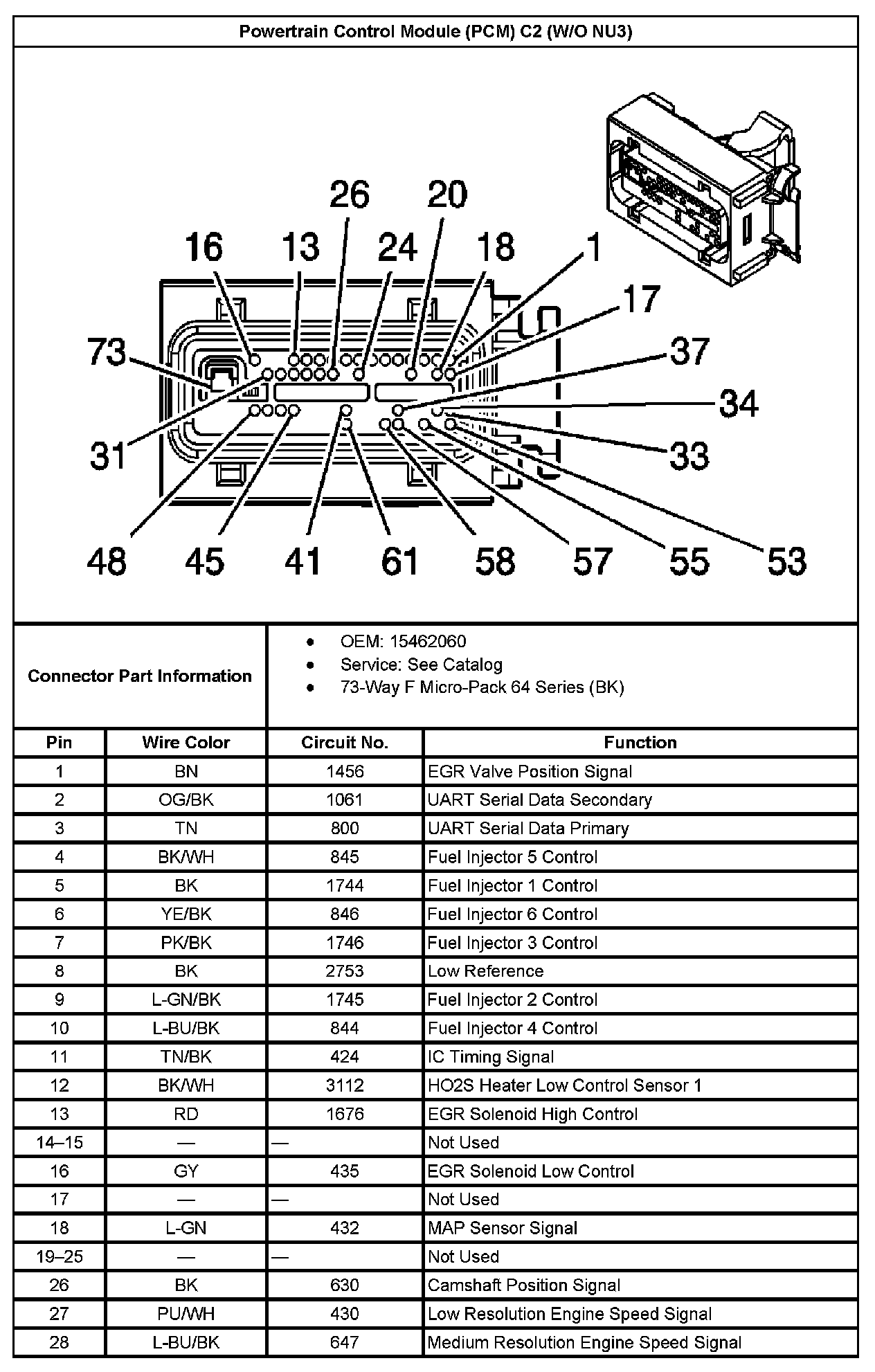 Powertrain Control Module (PCM) C2 (Without RPO Code NU3) Part 1: