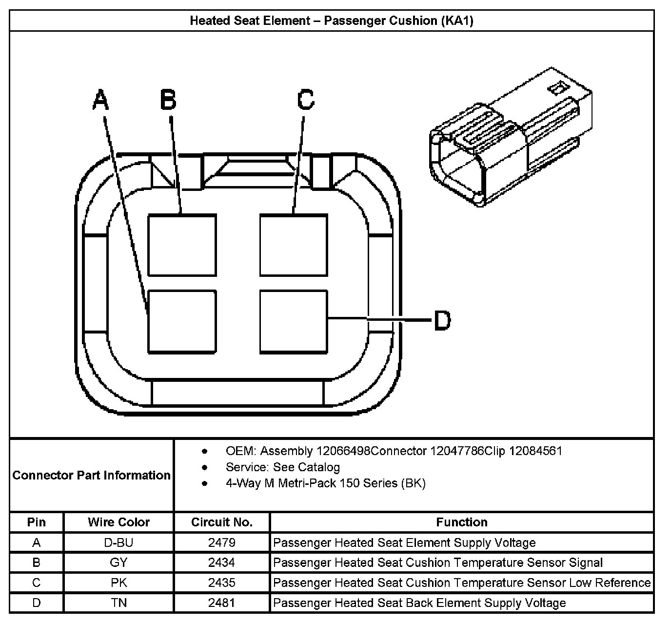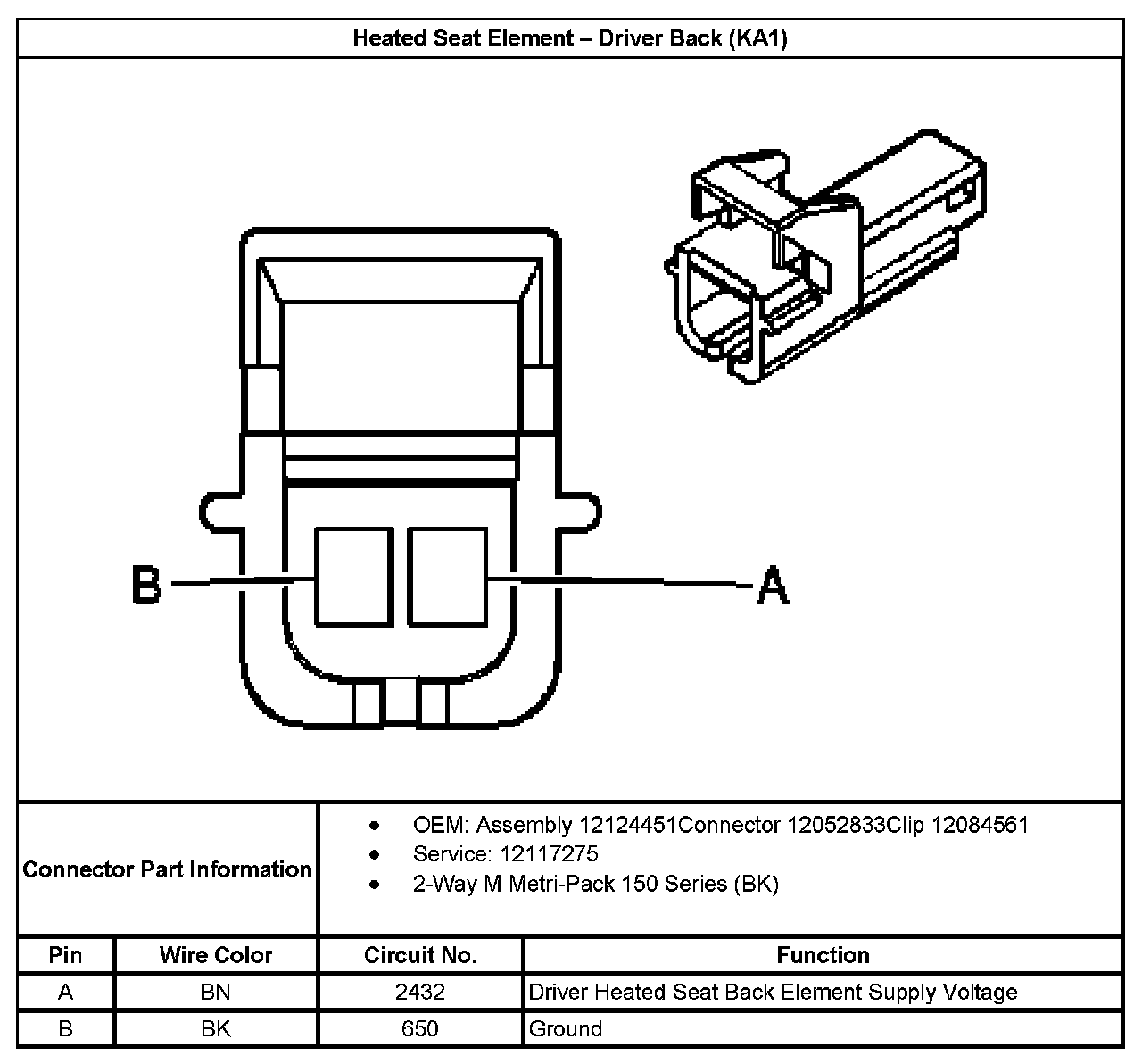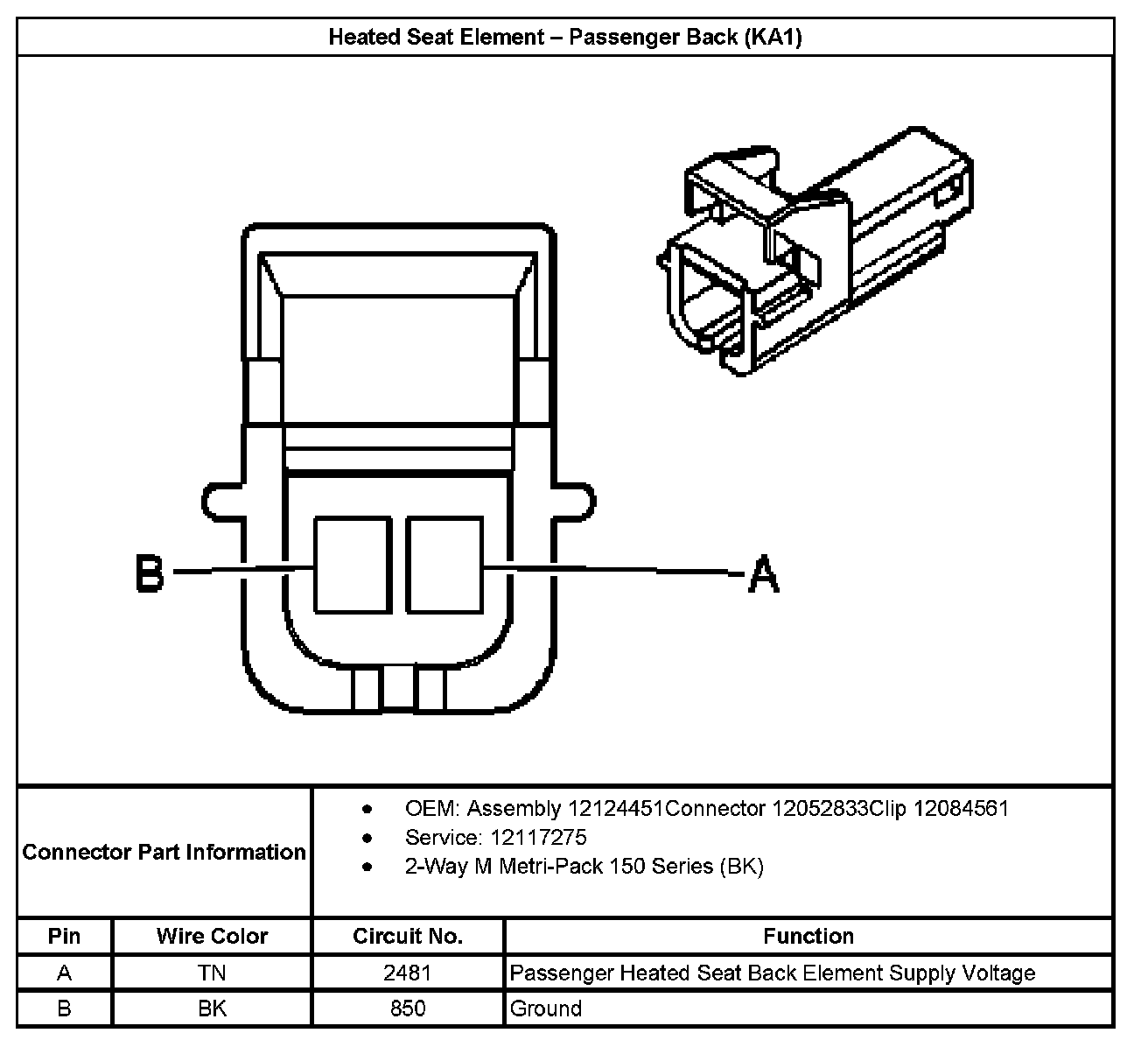 Heated Seat Element - Passenger Back (With RPO Code KA1):