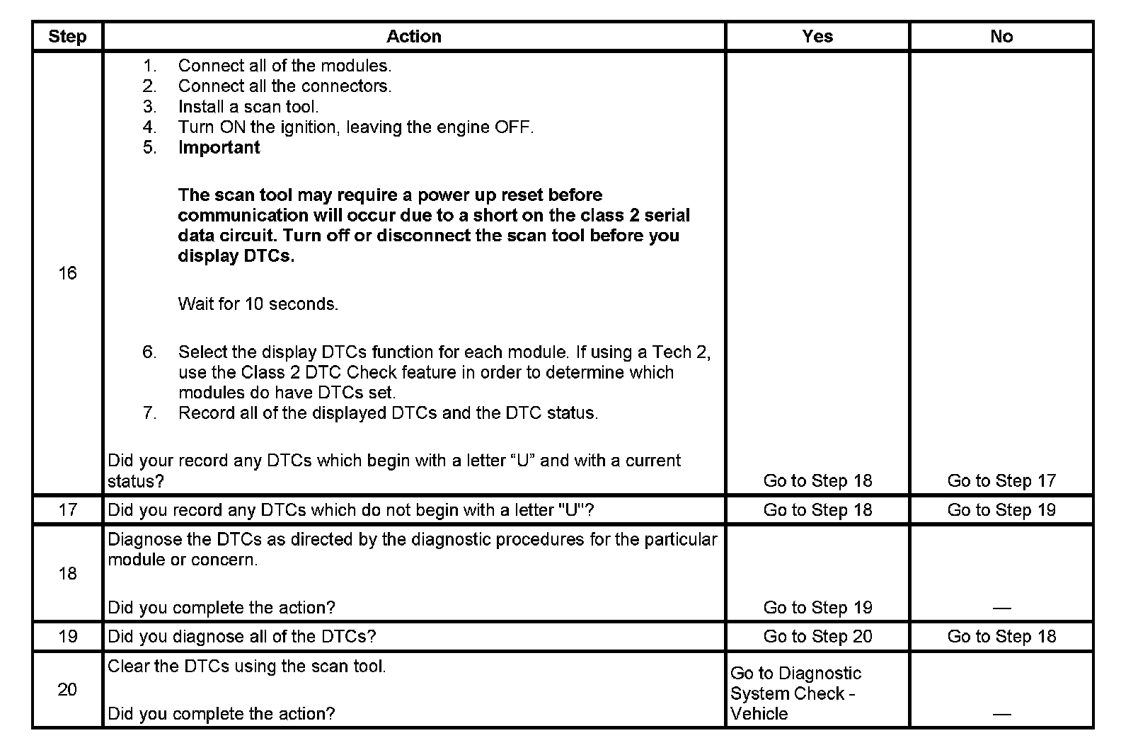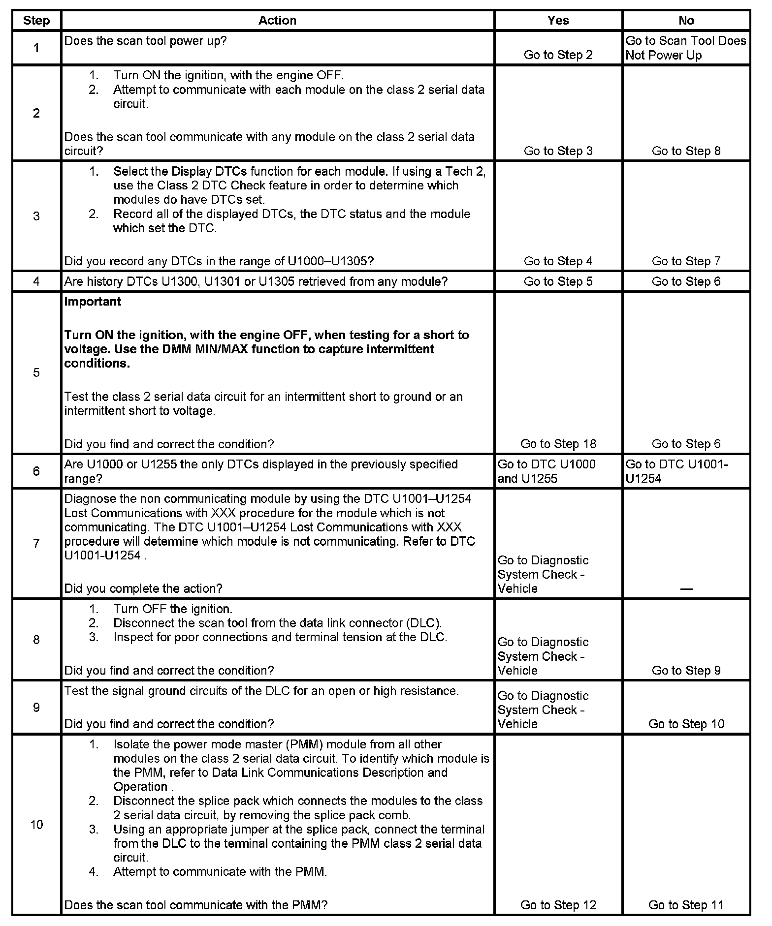 2. A partial loss of communication in the class 2 serial data circuit uses a different procedure than a total loss of communication of the class 2 serial data circuit.