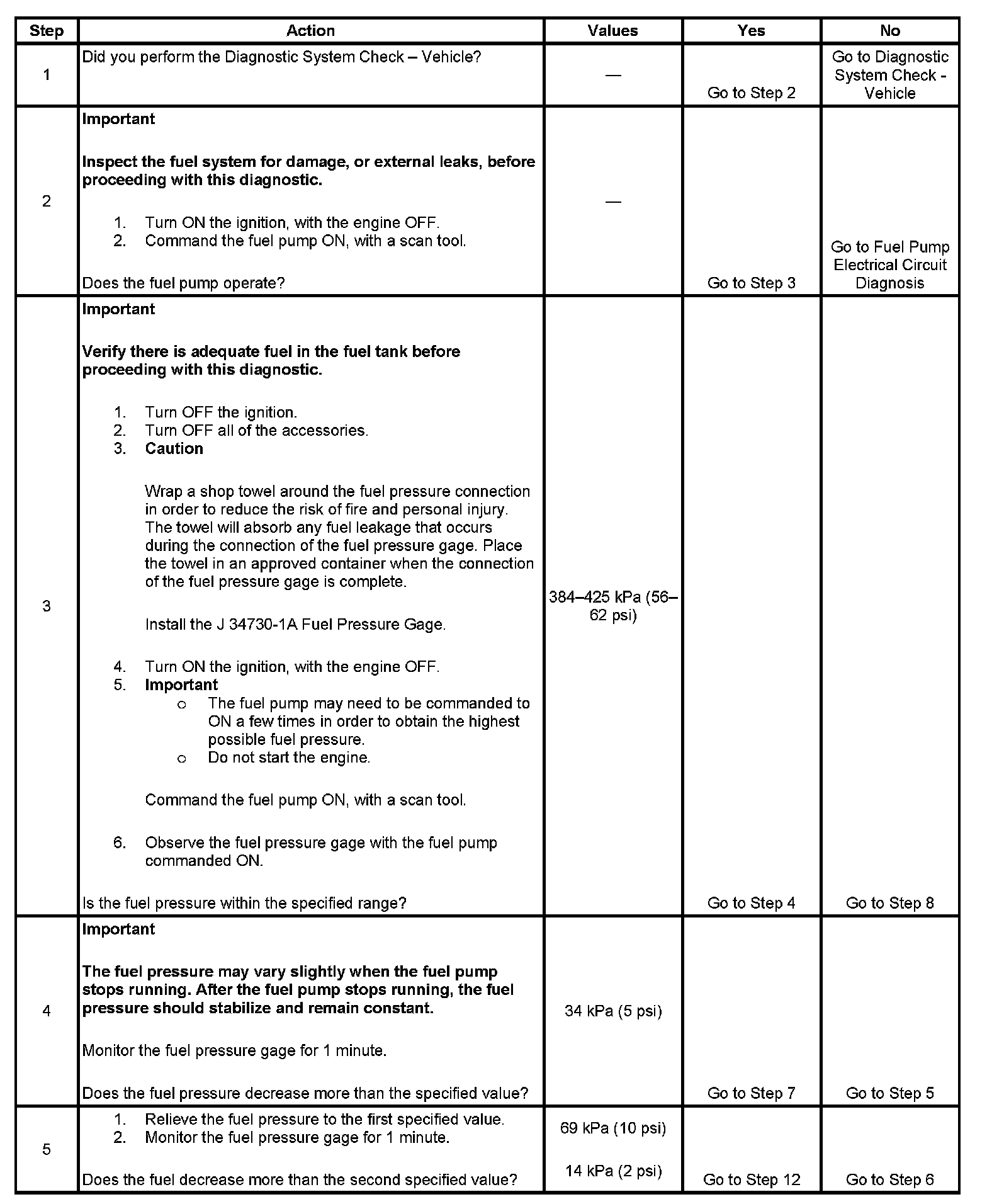 4. This step tests for an internal fuel leak. If the fuel pressure drops during this test, then an internal loss of pressure is indicated.