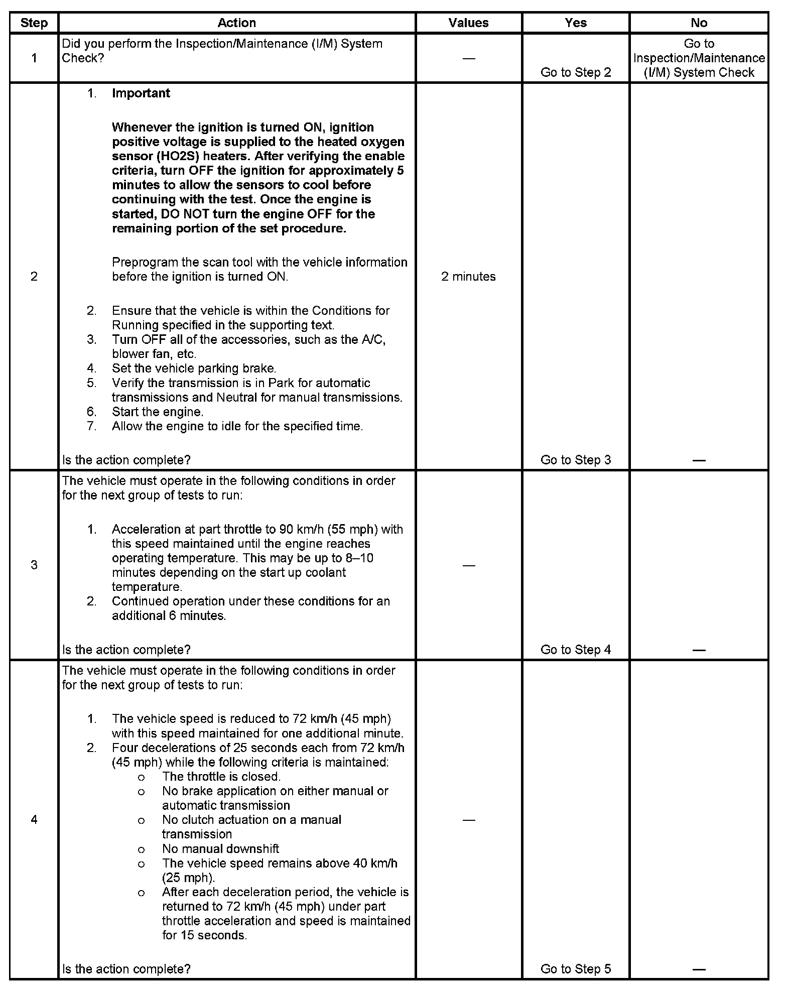 Rough road conditions may prevent some of the tests from running. Extreme high or low ambient temperatures may prevent tests such as heated oxygen sensor (HO2S) heater and evaporative emission (EVAP) system from initiating. If a step is interrupted before completion, perform the remaining portion of the set procedures. Any portion of the set procedure that requires the engine at operating temperature may be repeated. This allows most of the diagnostics to run, and the remaining tests can be performed using the individual System Set Procedures.