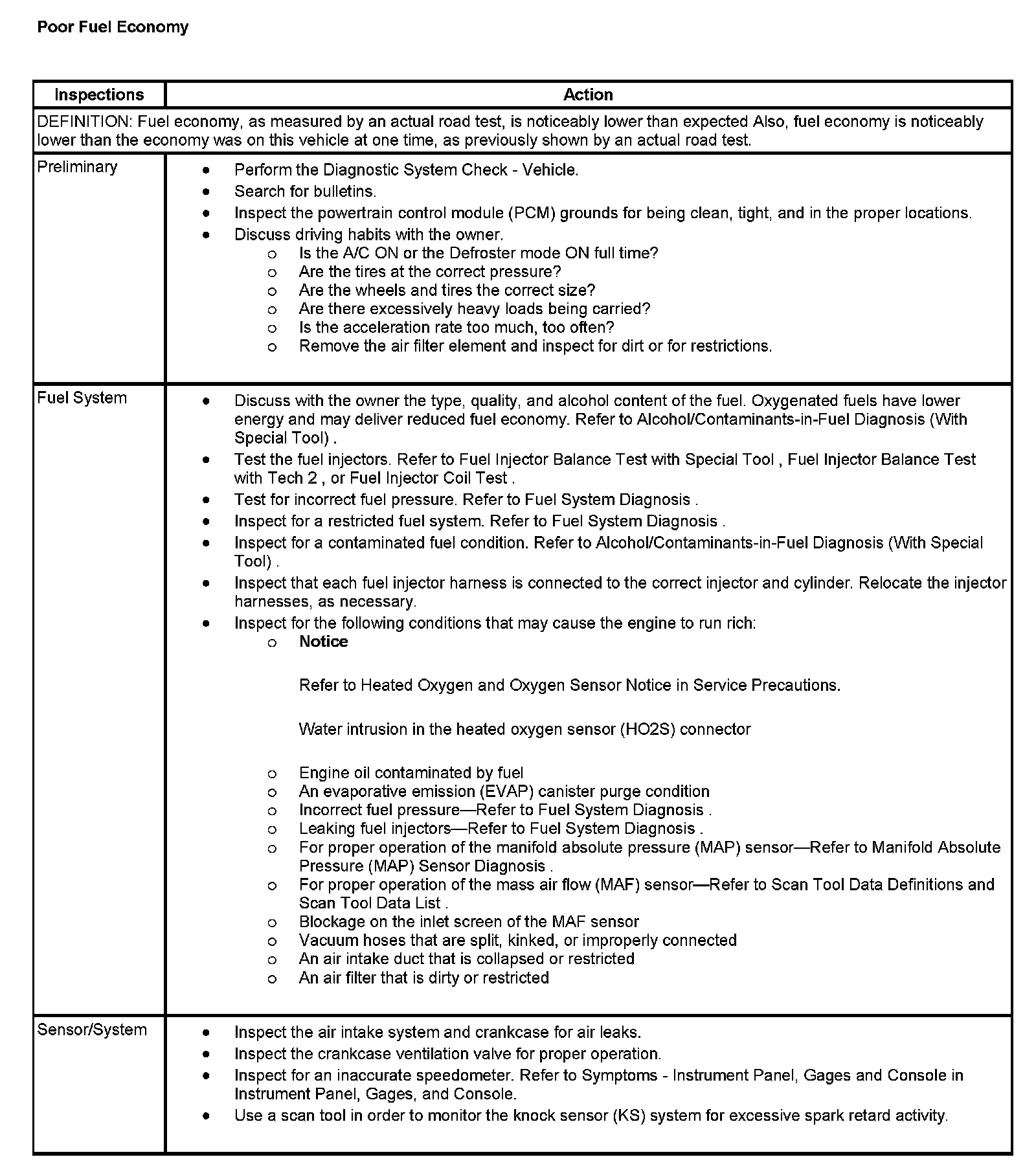 Poor Fuel Economy