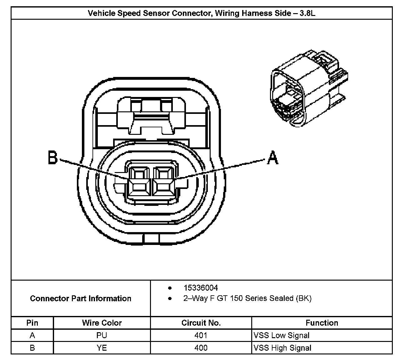 Vehicle Speed Sensor Connector End View, Wiring Harness Side - 3.8L: