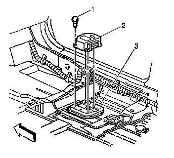 10. Remove the SDM (2) from the floor pan (3).