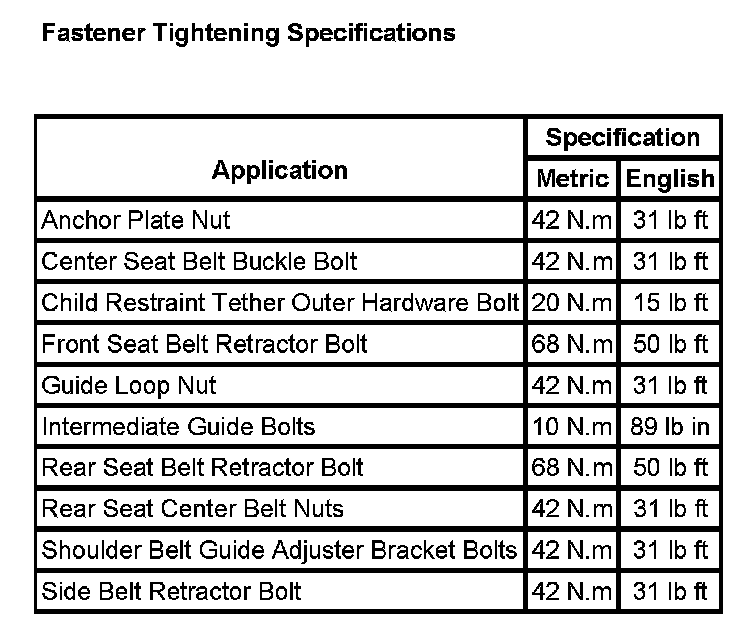 Seat Belt Systems: Specifications