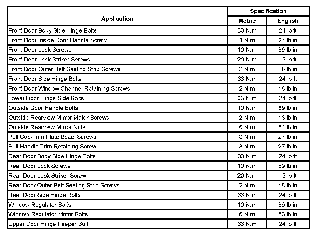Fastener Tightening Specifications
