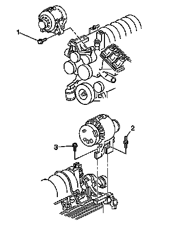 7. Install the generator bolts (1, 3) to the generator bracket.