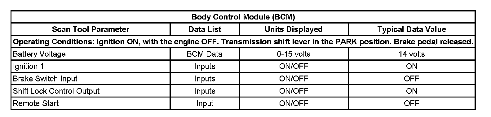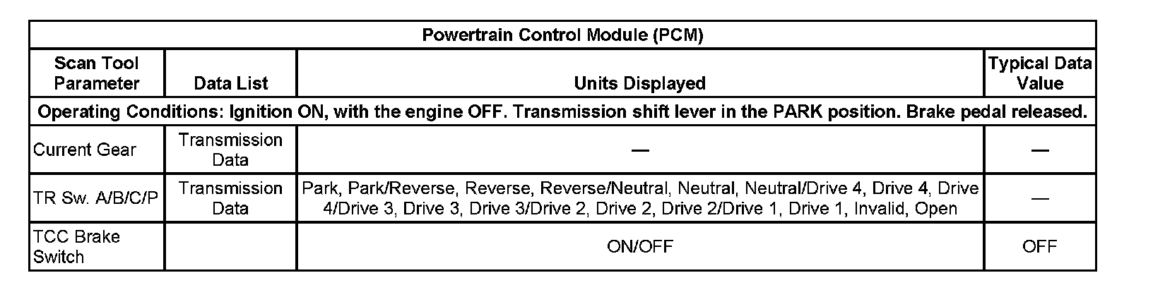 Scan Tool Data List