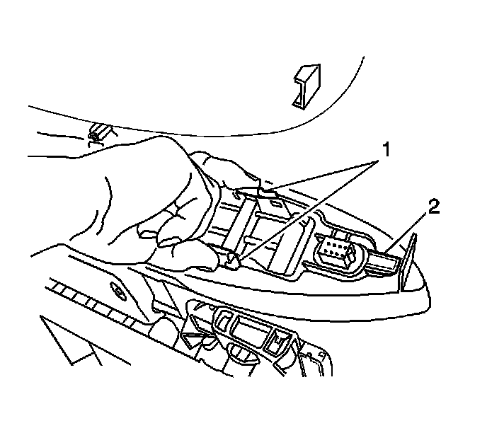 5. Press the 2 retaining clips (1) together and push the rear of the bezel out through the door trim.