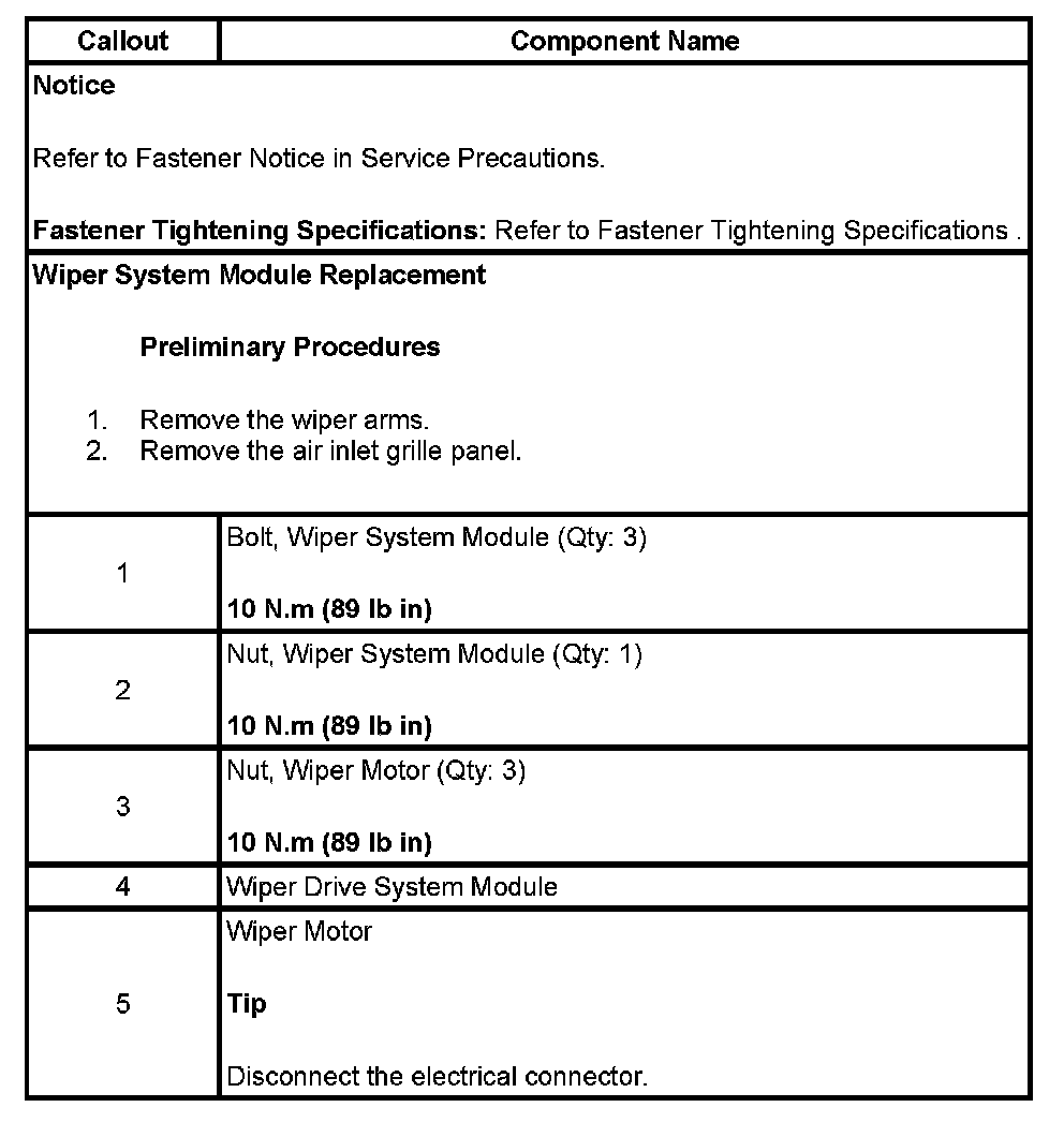WIPER MOTOR, WIPER SYSTEM MODULE REPLACEMENT