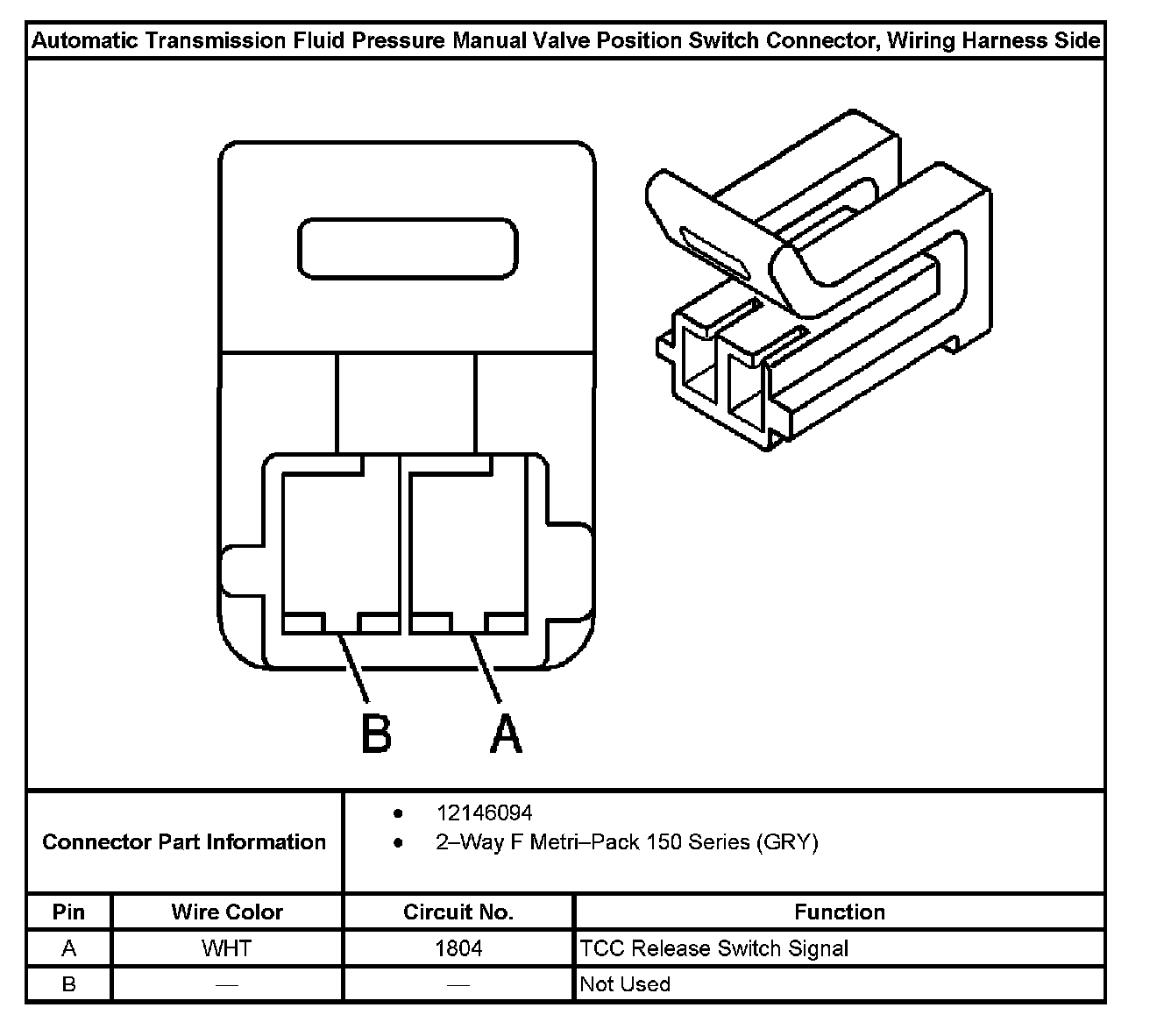 Automatic Transmission Fluid Pressure Manual Valve Position Switch Connector, Wiring Harness Side: