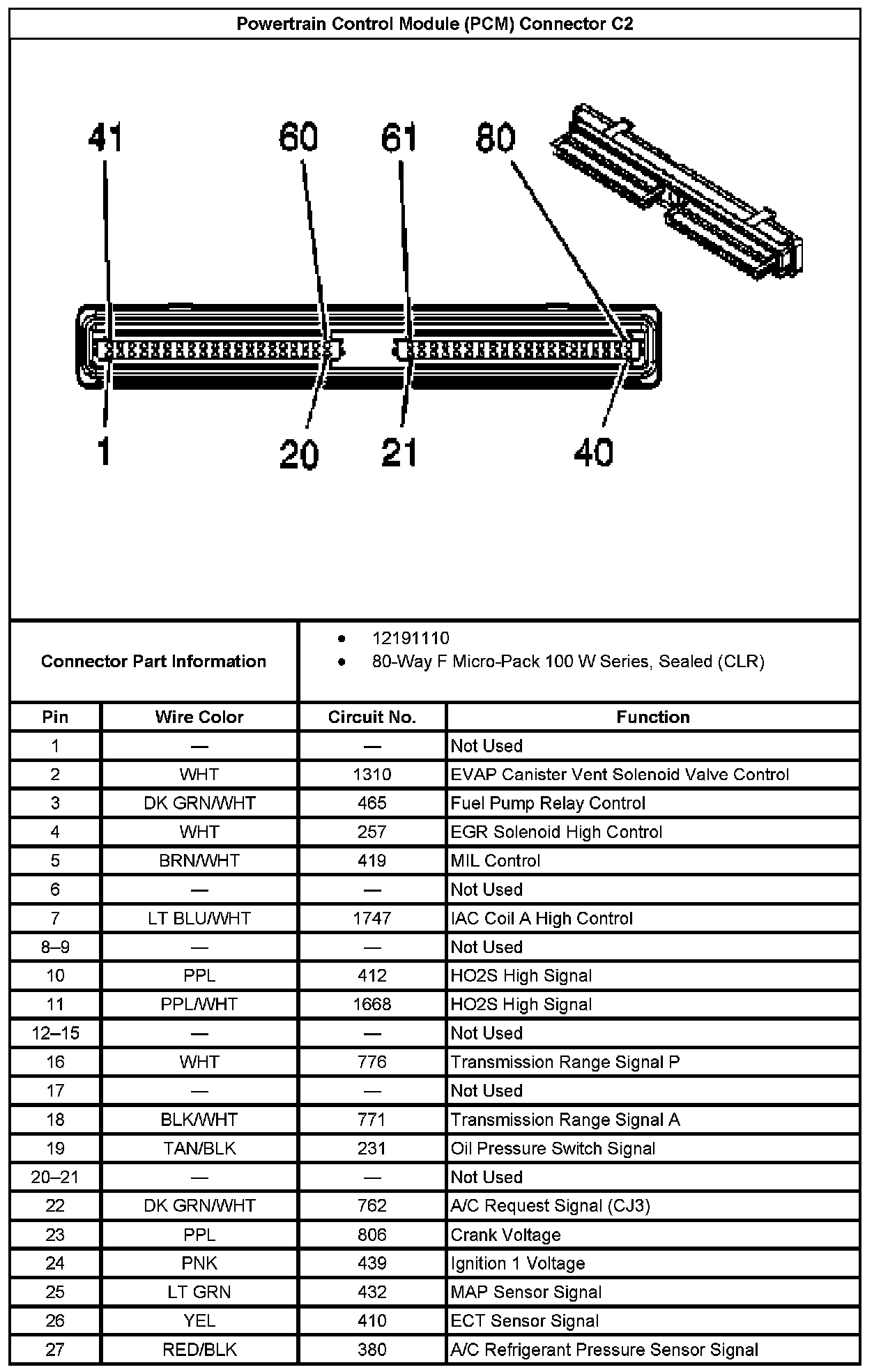 Powertrain Control Module (PCM) Connector C2 Part 1: