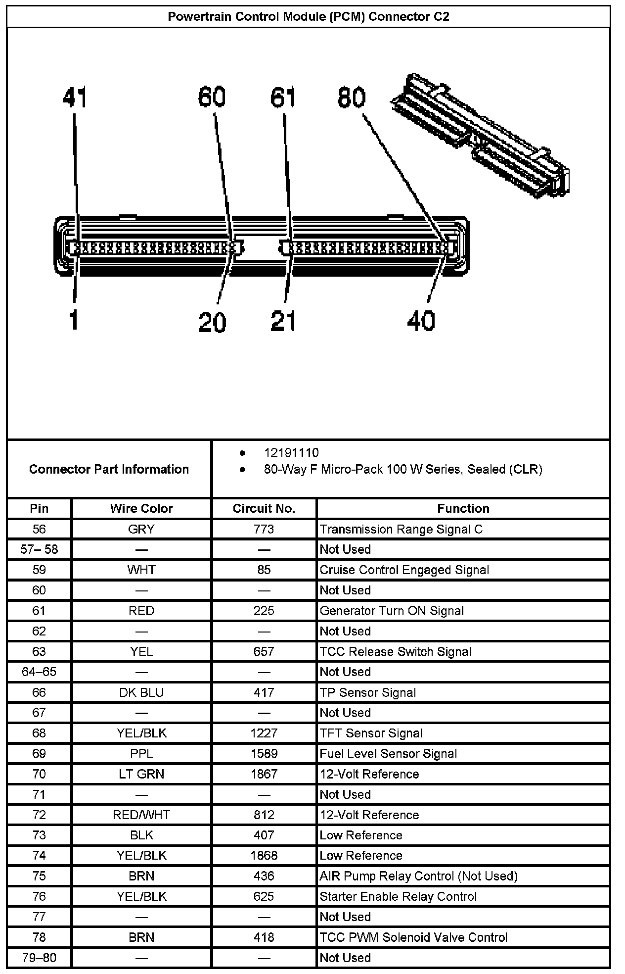 Powertrain Control Module (PCM) Connector C2 Part 3: