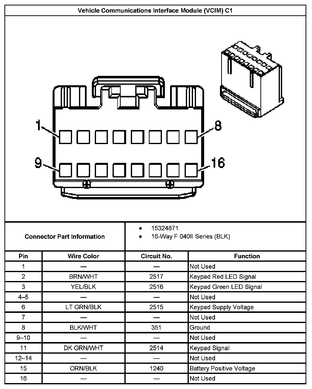 Vehicle Communications Interface Module (VCM) C1: