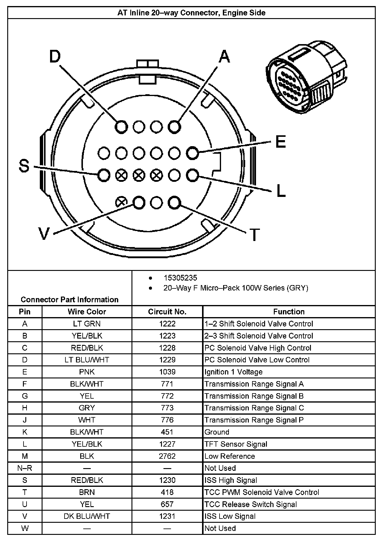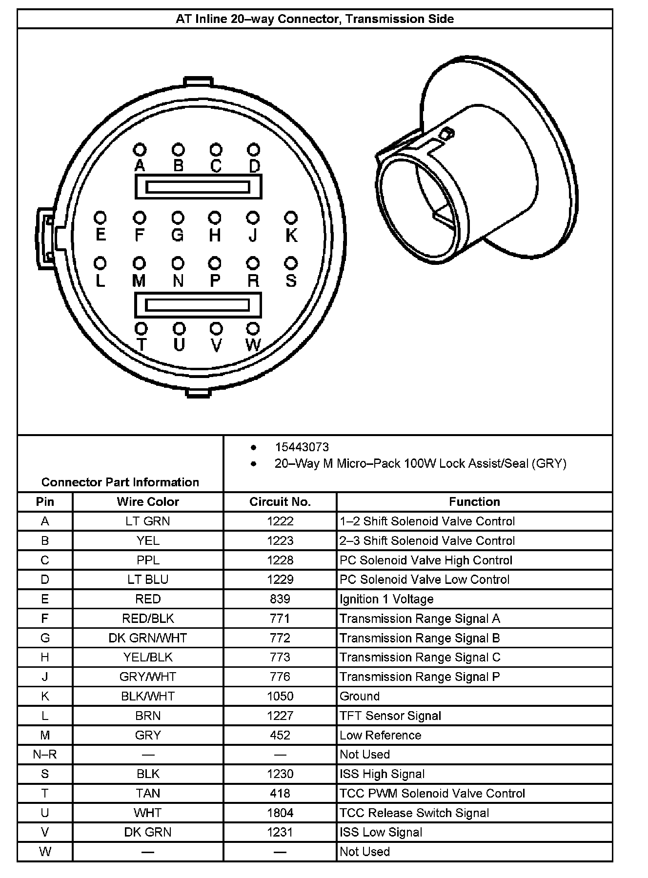 AT Inline 20-way Connector, Transmission Side: