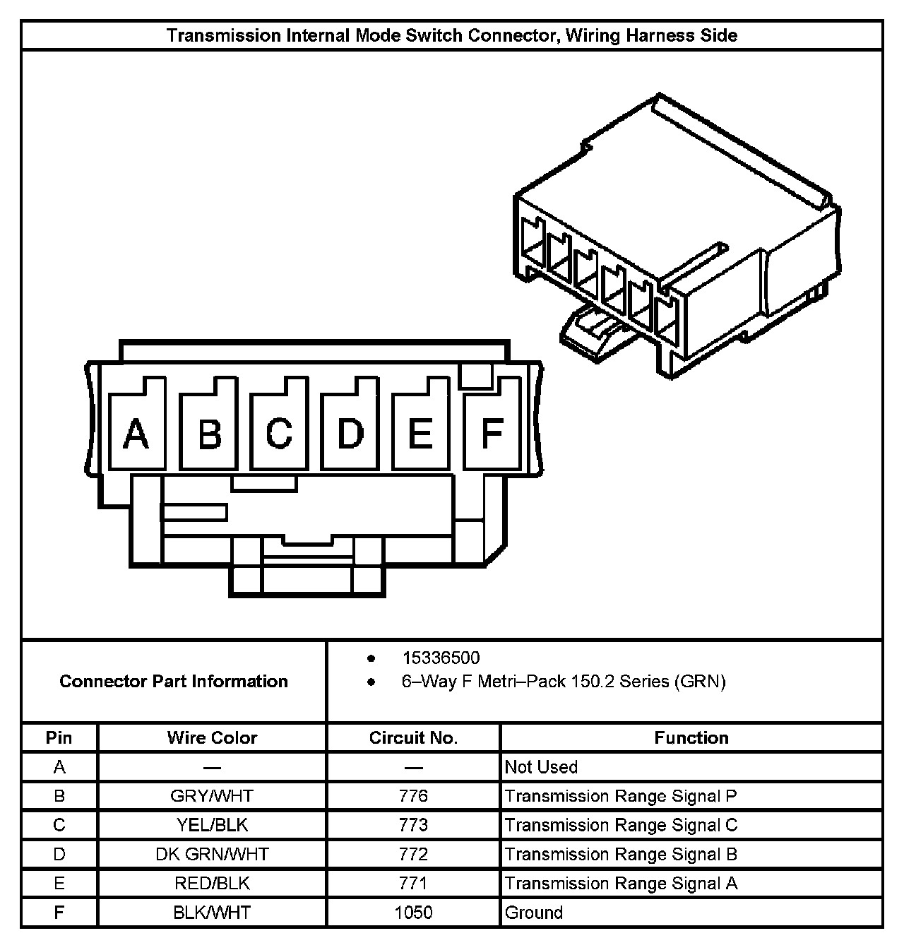 Transmission Internal Mode Switch Connector, Wiring Harness Side: