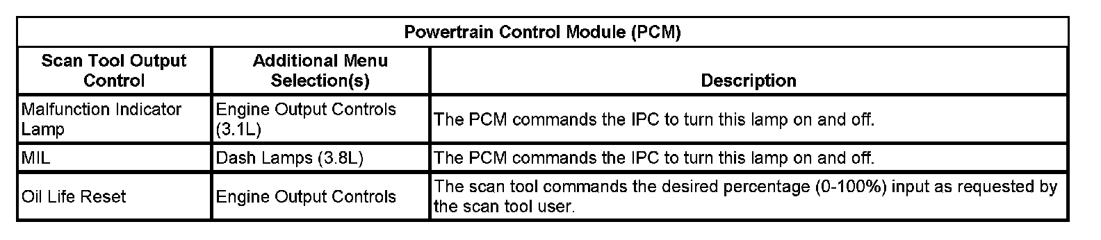 Scan Tool Output Controls - Powertrain Control Module (PCM)