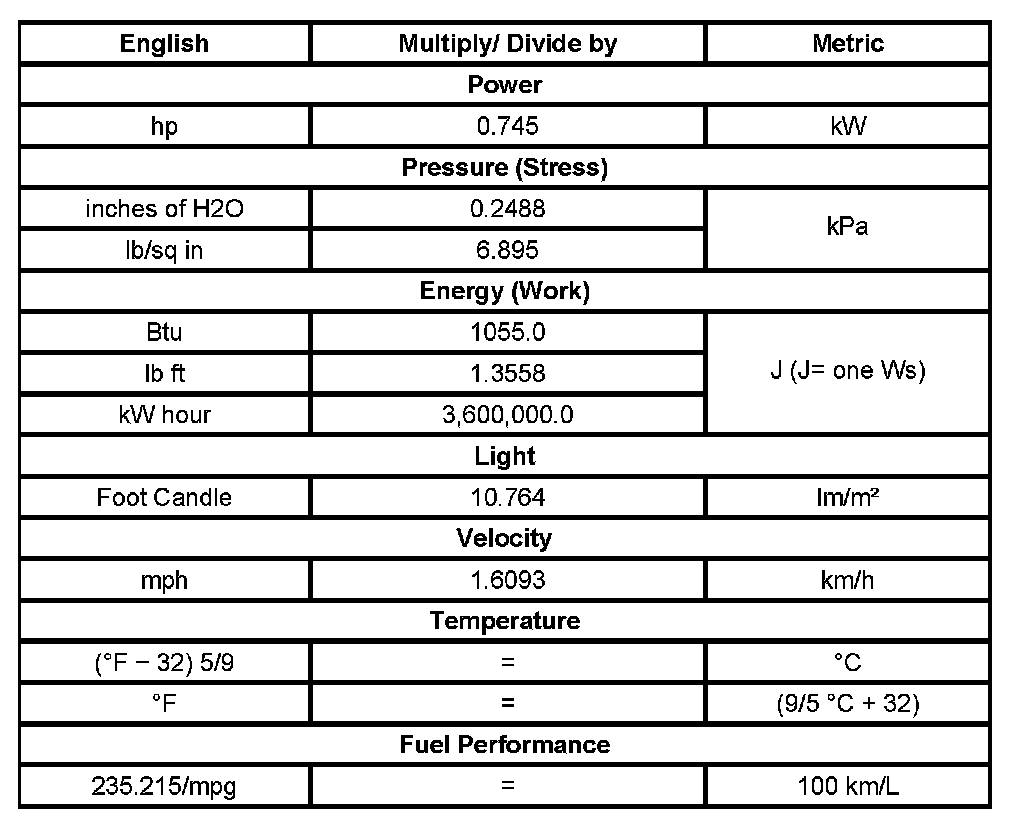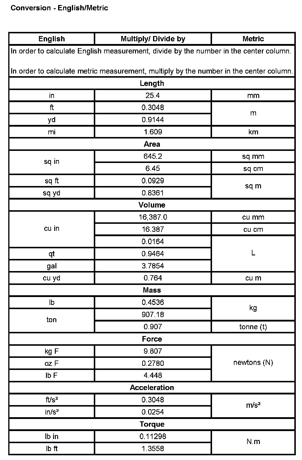 Conversion - English/Metric
