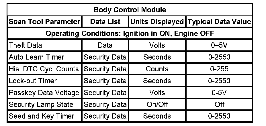 Scan Tool Data List - Antitheft System