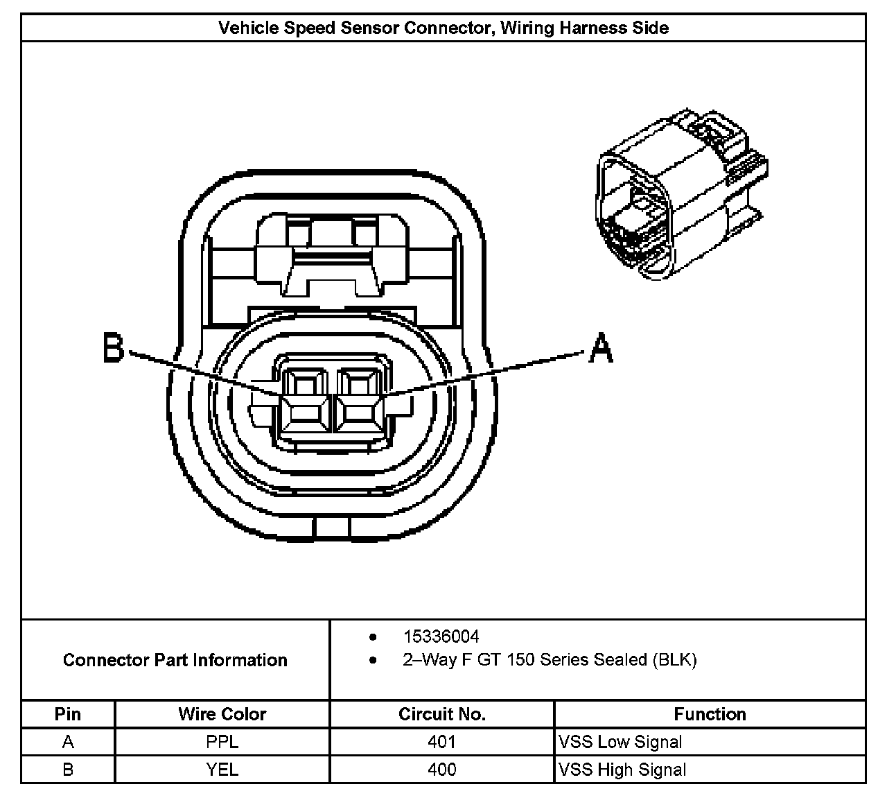 Vehicle Speed Sensor Connector, Wiring Harness Side: