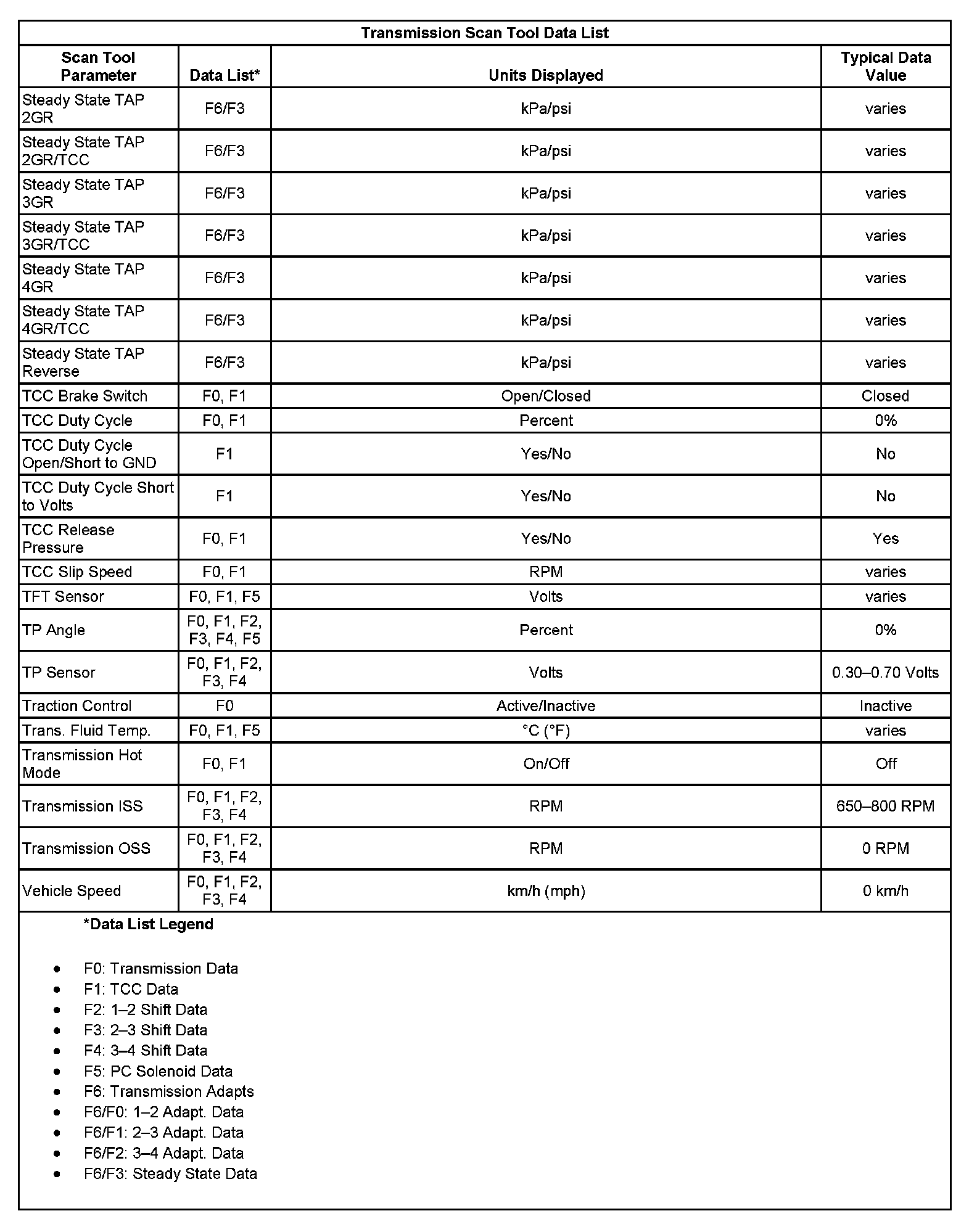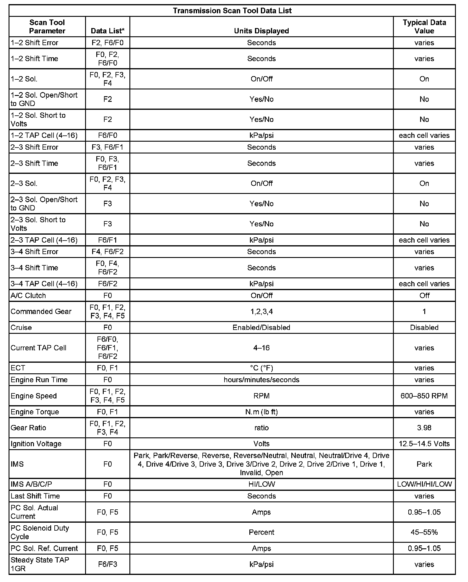 Only the parameters listed below are used in this manual for diagnosing. If a scan tool displays other parameters, the values are not recommended by General Motors for use in diagnosis.