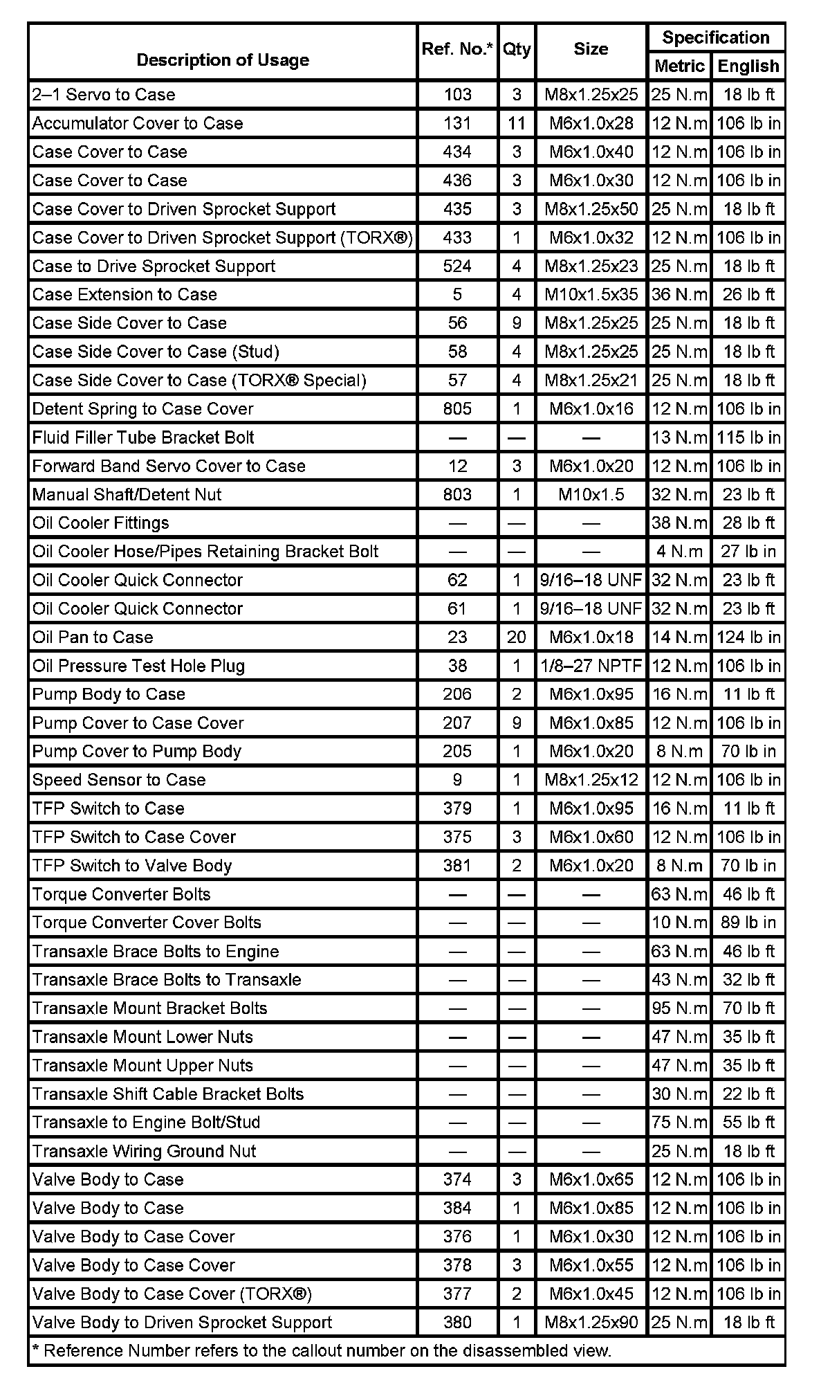 Fastener Tightening Specifications: