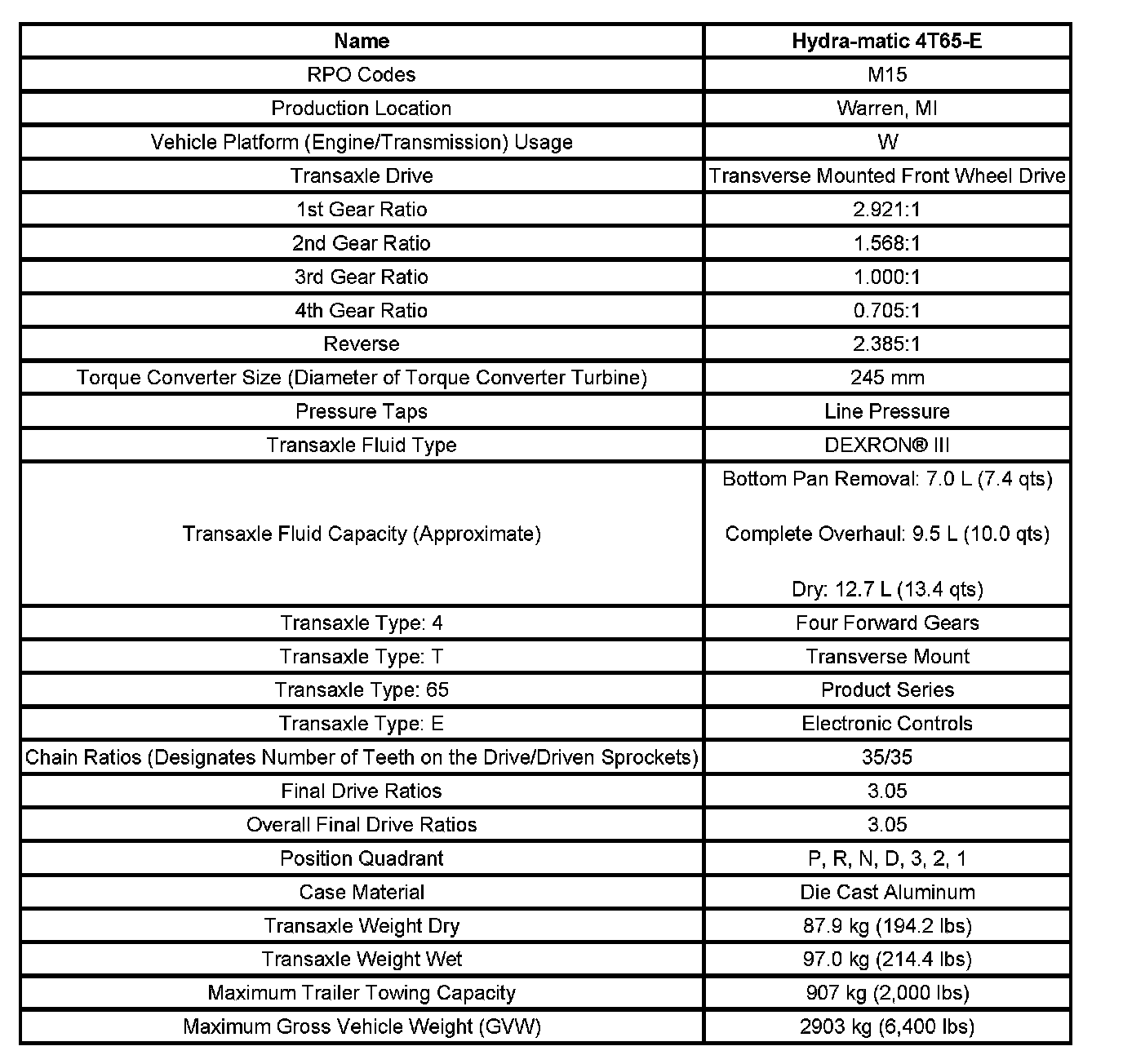 Transmission General Specifications