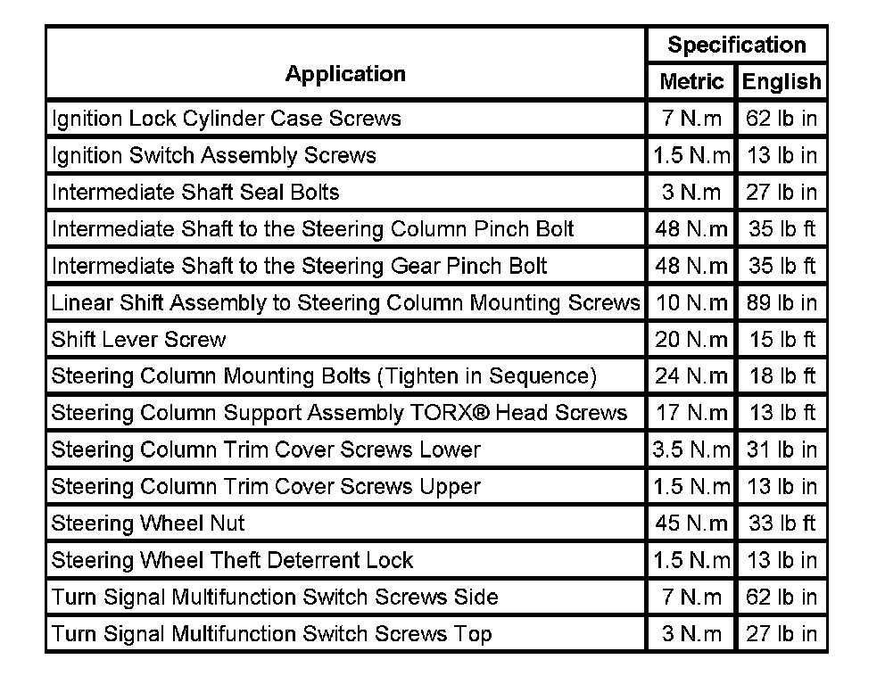 Fastener Tightening Specifications: