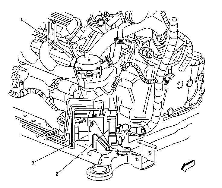 EBCM/BPMV, Left Front Corner of the Engine Compartment, on the Frame Rail
