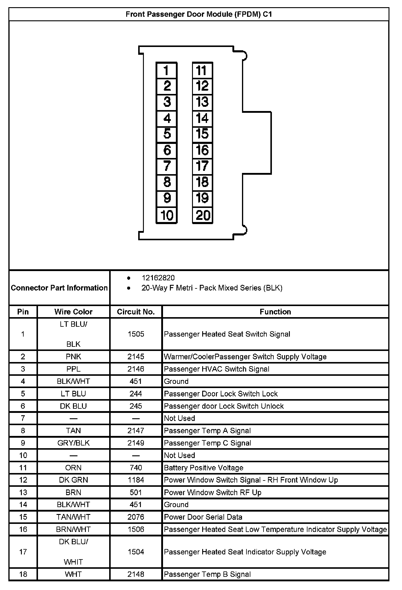 Front Passenger Door Module (FPDM) C1 Part 1: