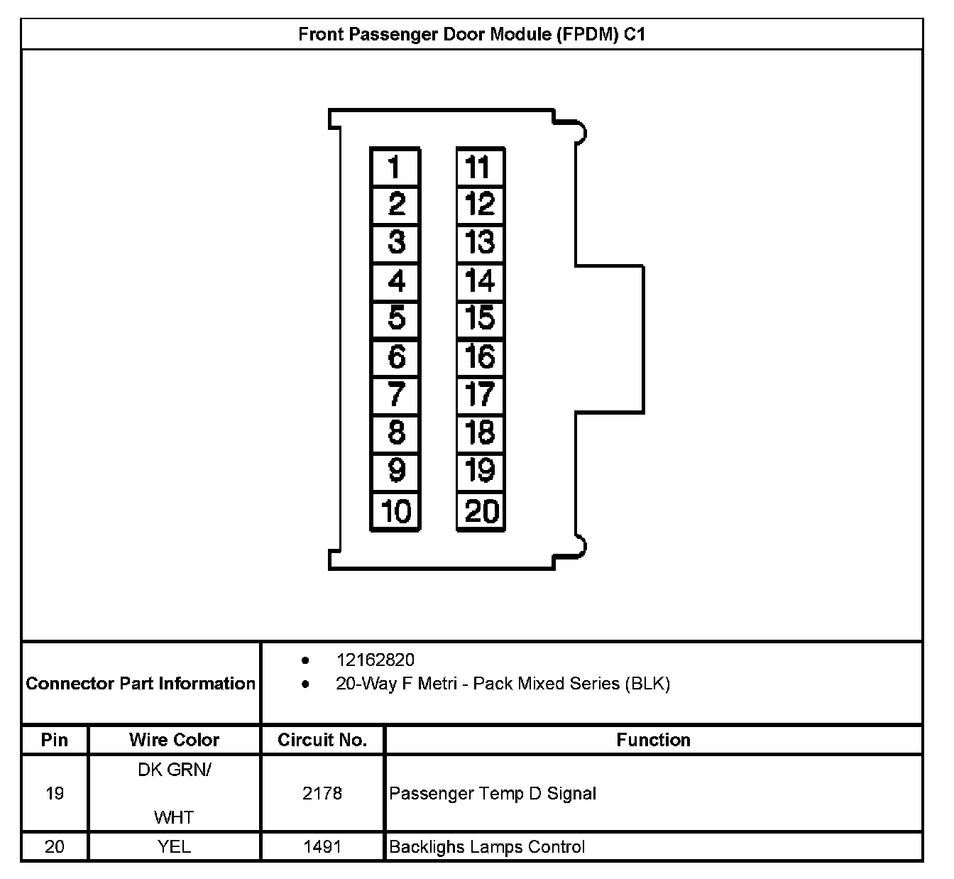 Front Passenger Door Module (FPDM) C1 Part 2: