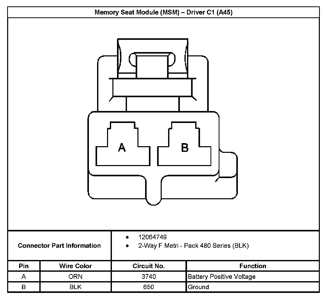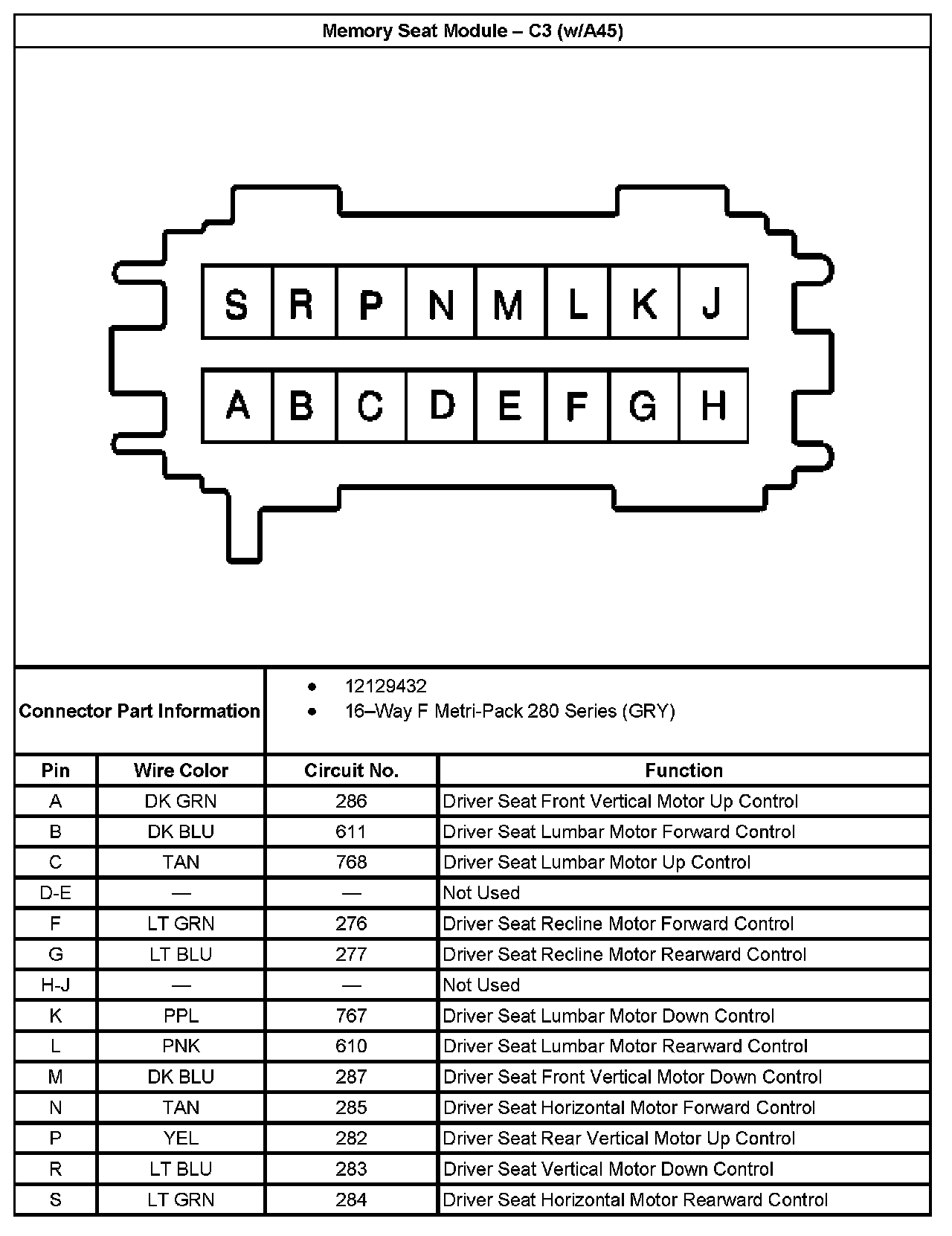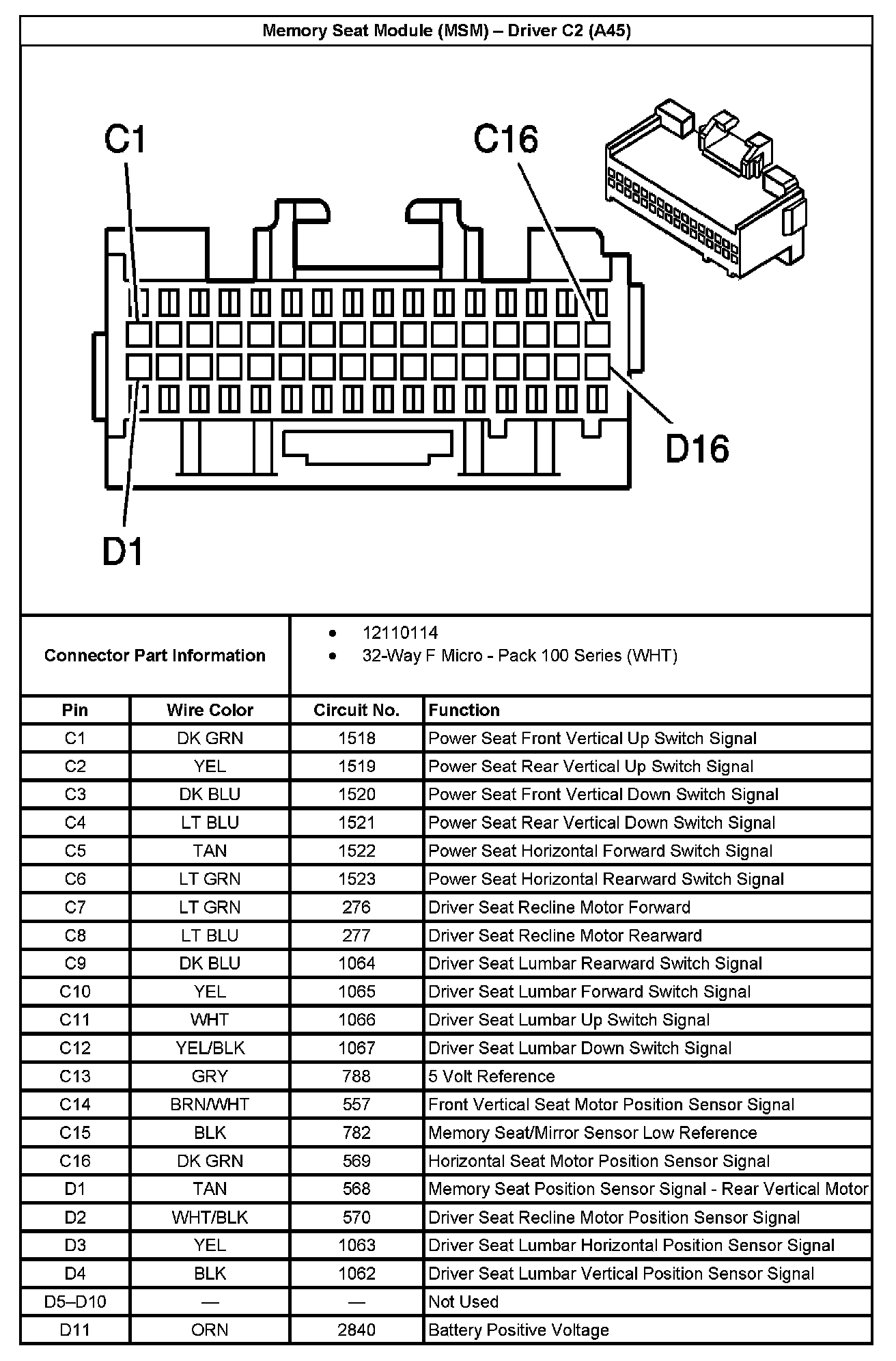 Memory Seat Module (MSM) - Driver C2 (With RPO Code A45) Part 1: