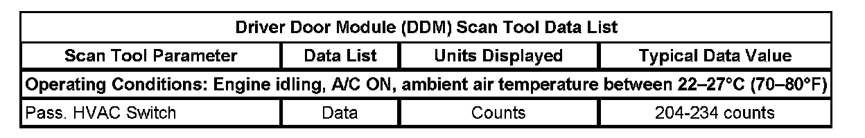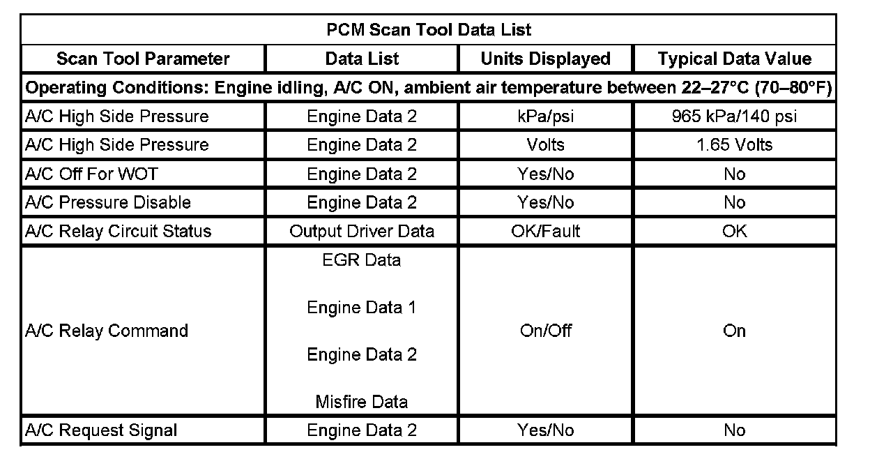 The scan tool data values were taken from a known good vehicle under the following conditions: