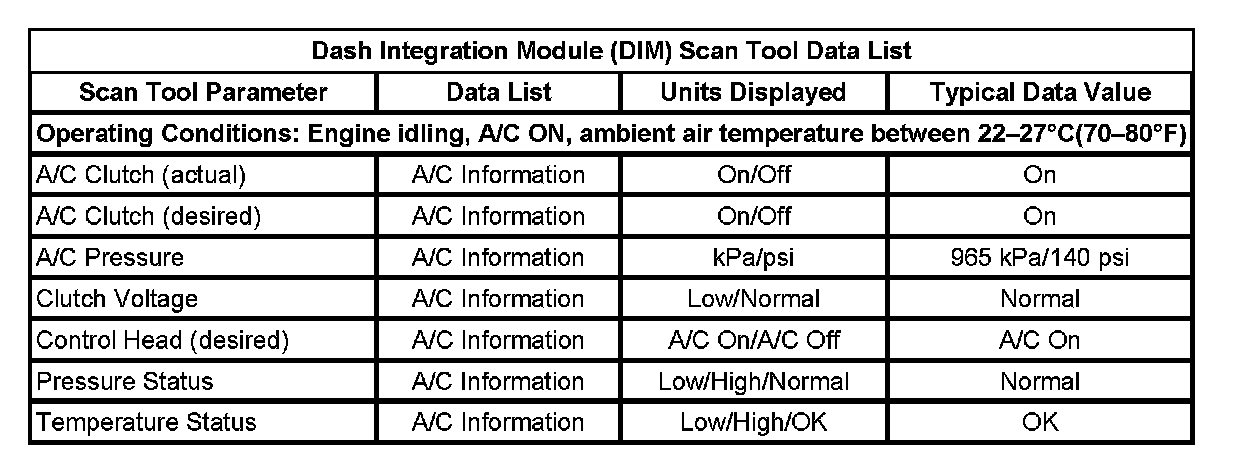 Dash Integration Module (DIM) Scan Tool Data List: