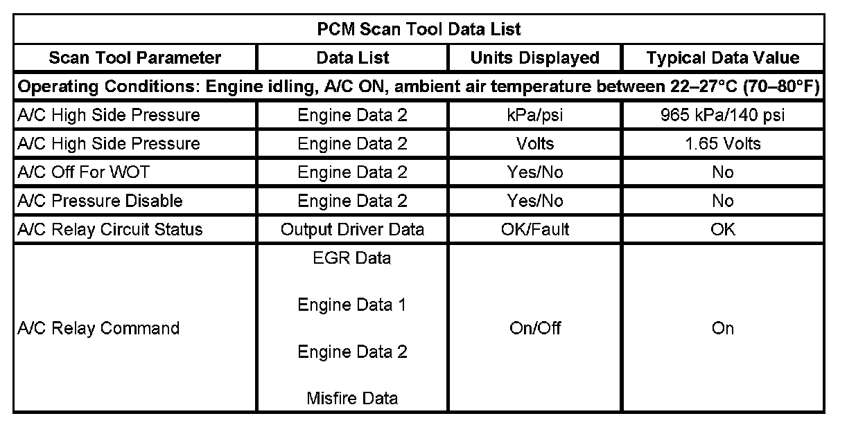PCM Scan Tool Data List: