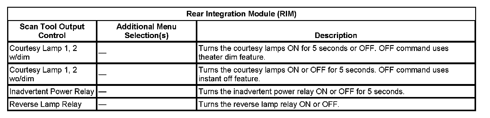 Scan Tool Output Controls - Rear Integration Module (RIM)