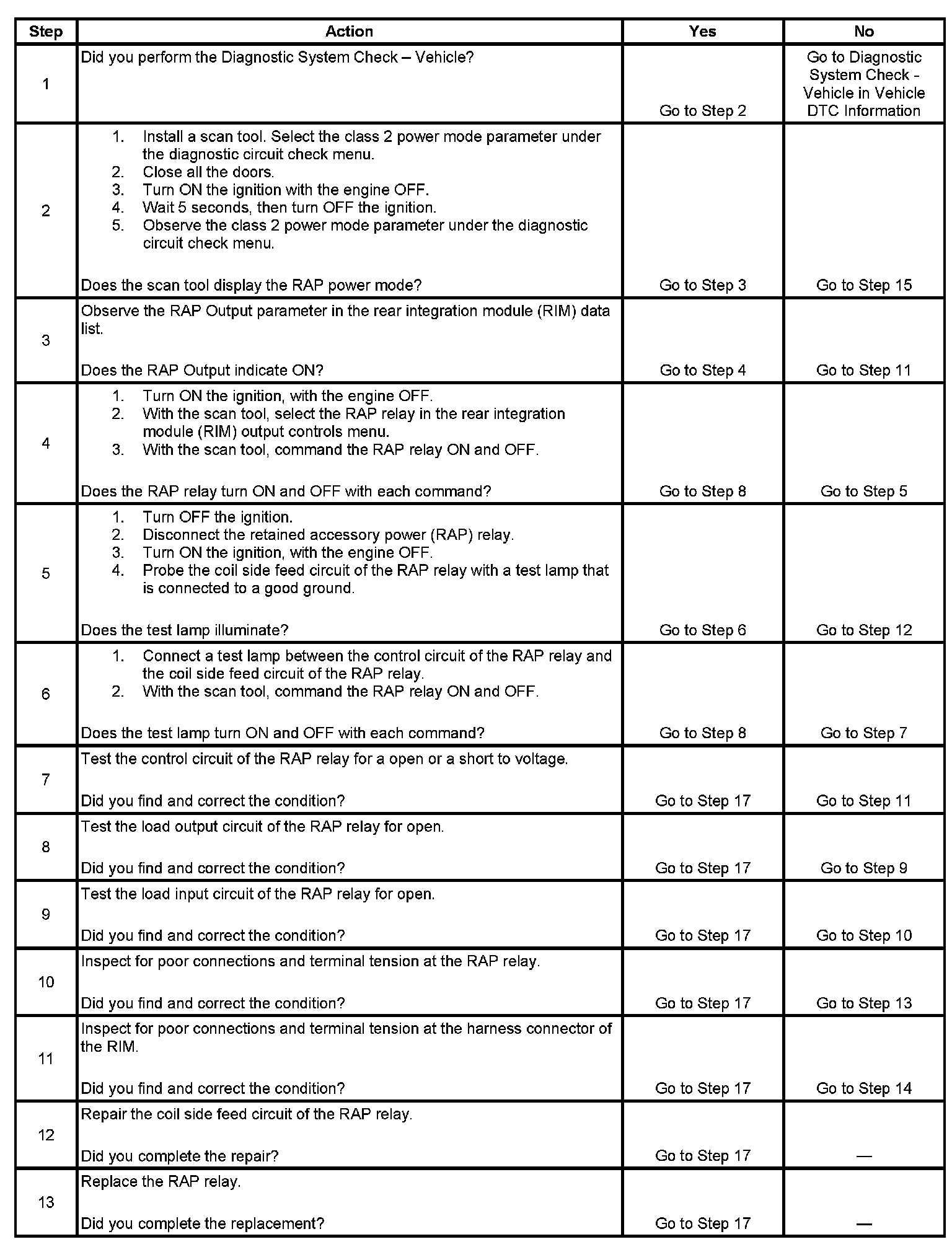 Retained Accessory Power (RAP) Inoperative