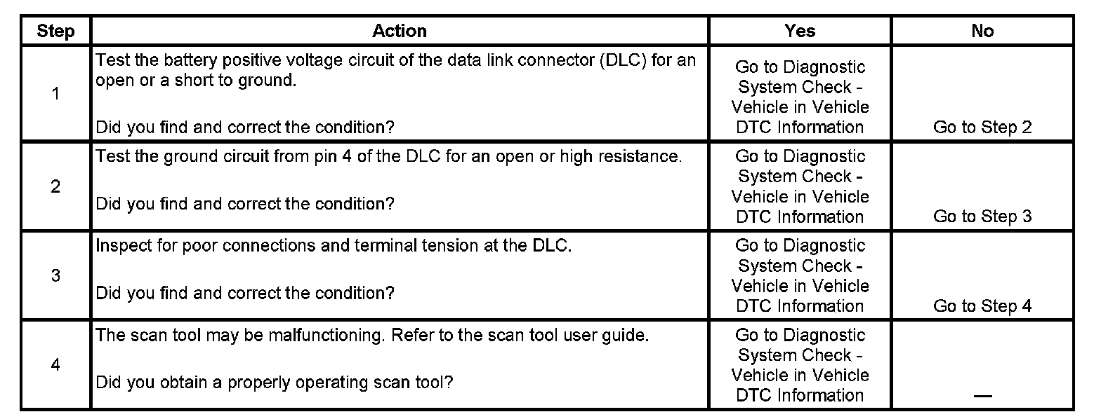 4. If the battery positive voltage and ground circuits of the DLC are functioning properly. The malfunction must be due to the scan tool.