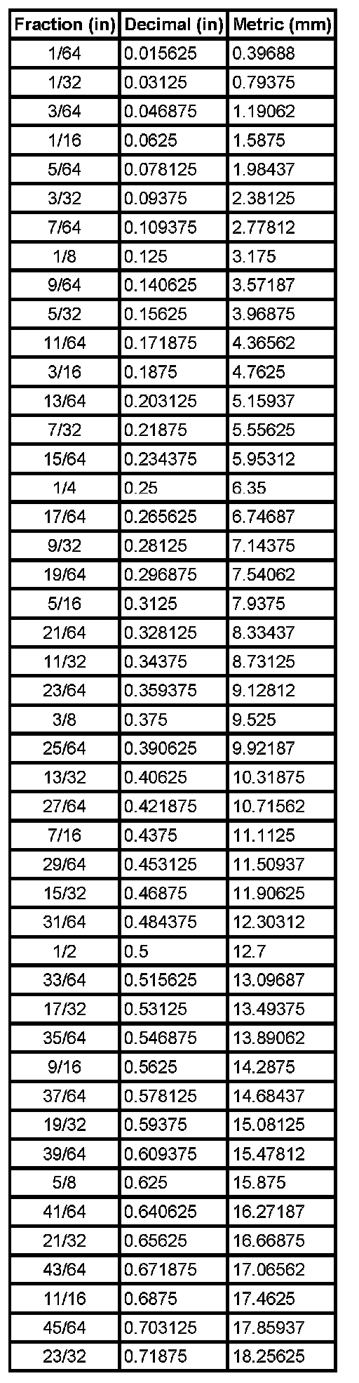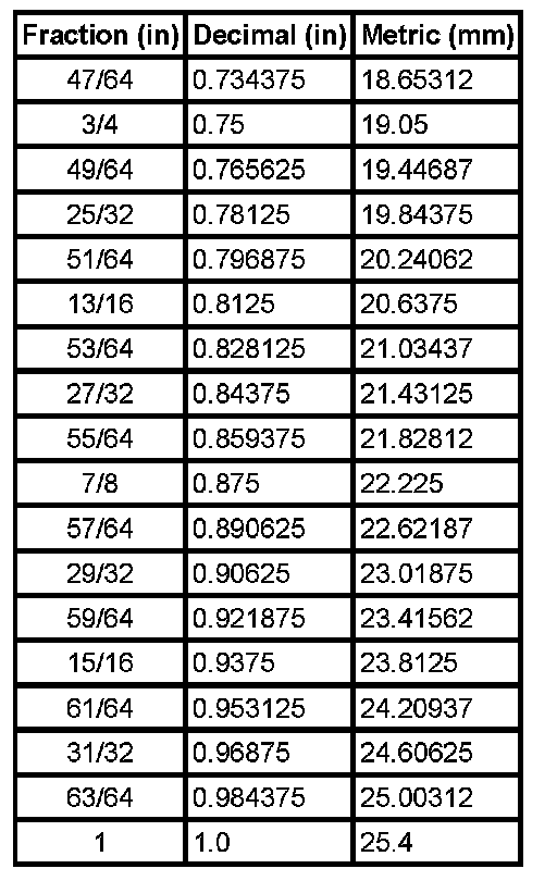Equivalents - Decimal And Metric
