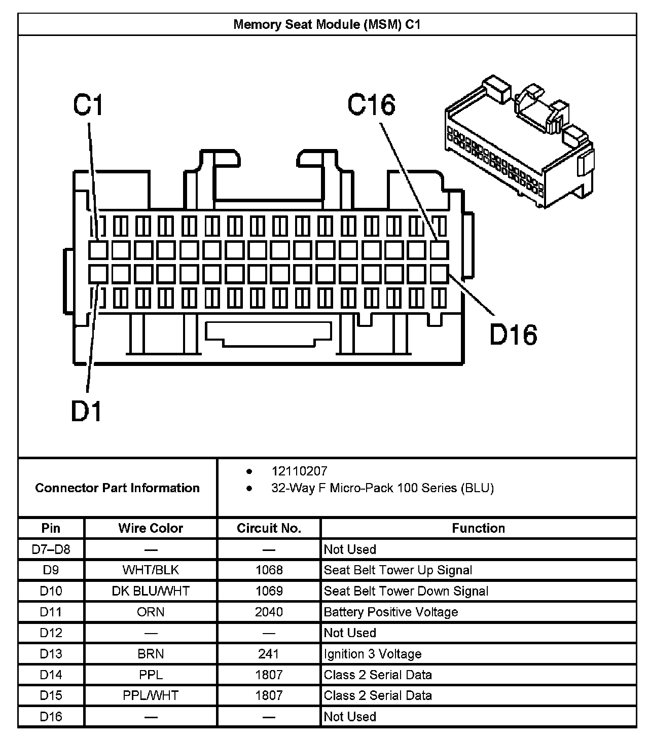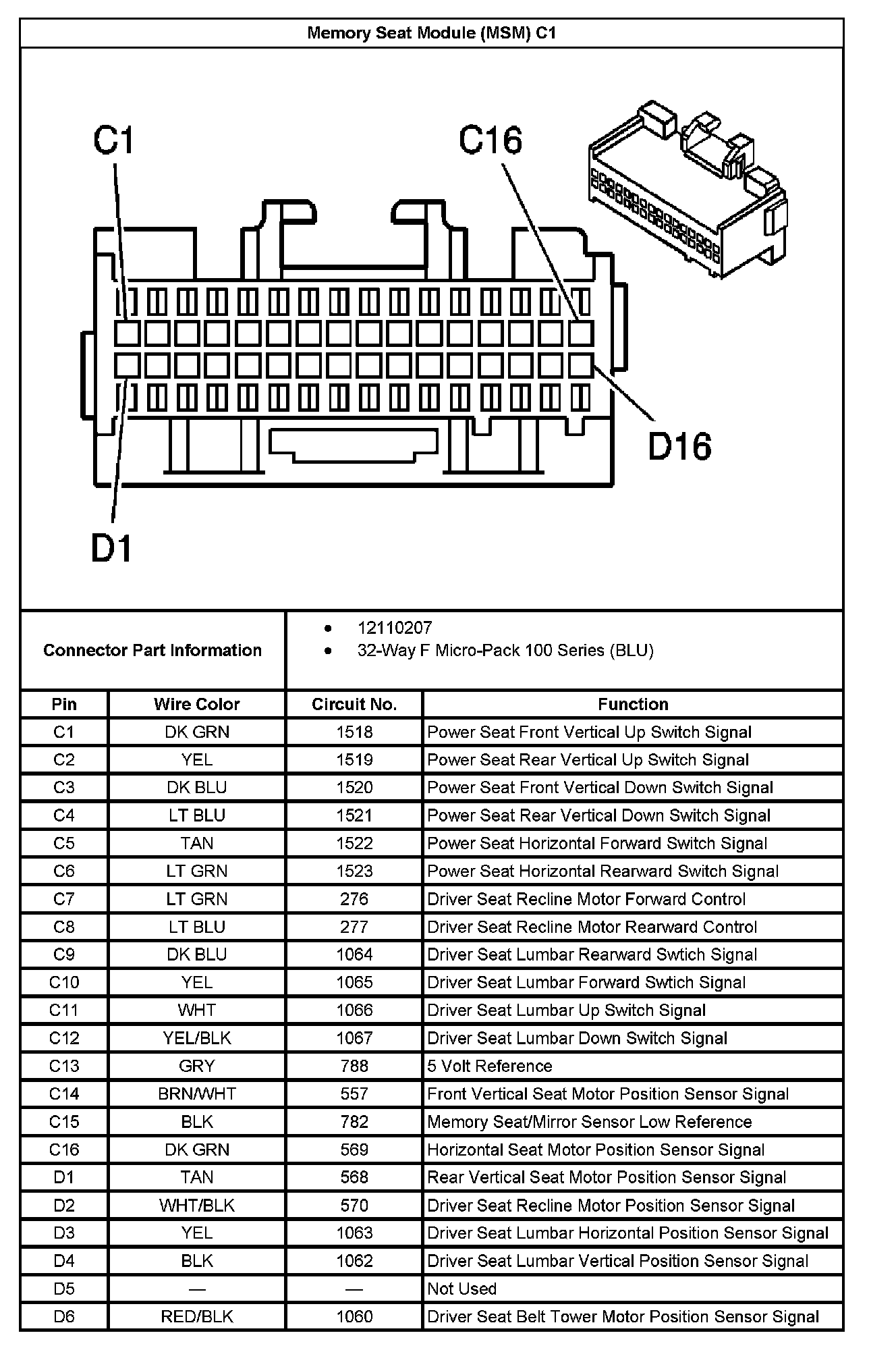 Memory Seat Module (MSM) C2: