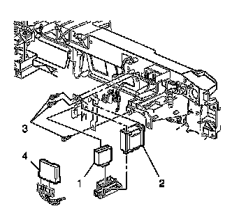 4. Remove three fasteners (3) securing the lamp control module bracket to the instrument panel.