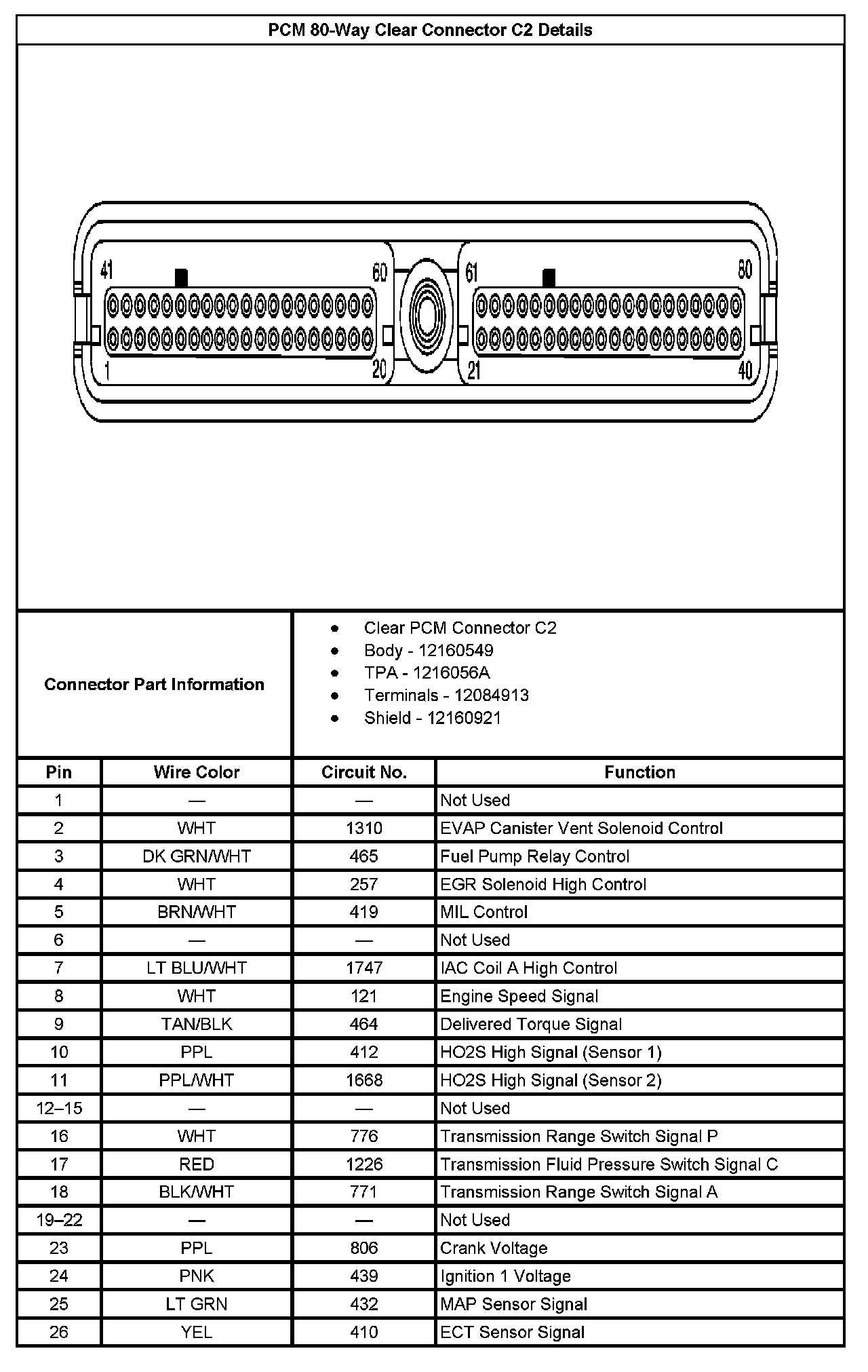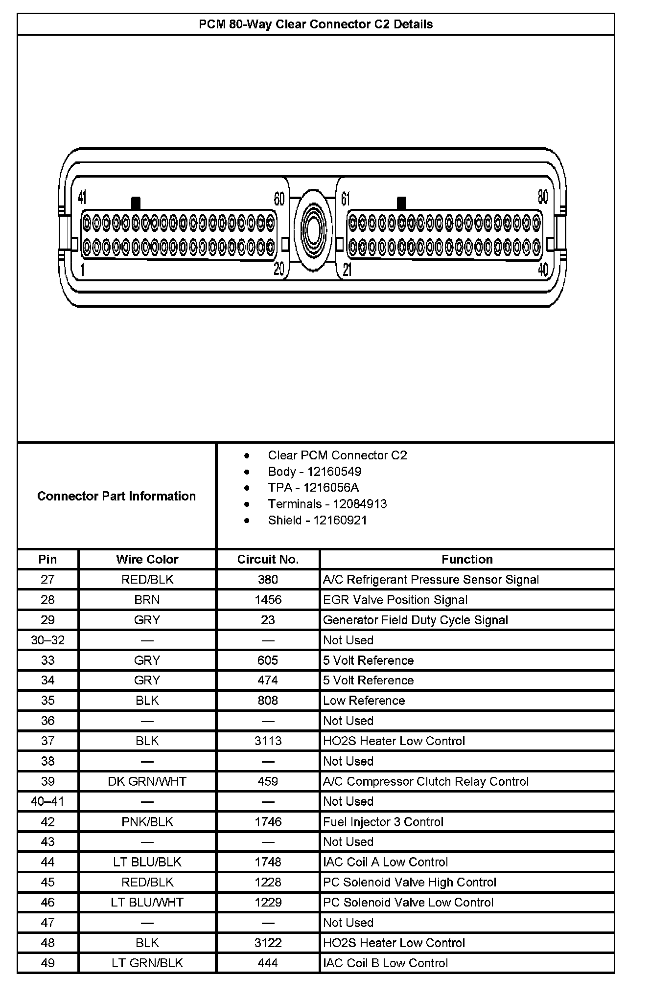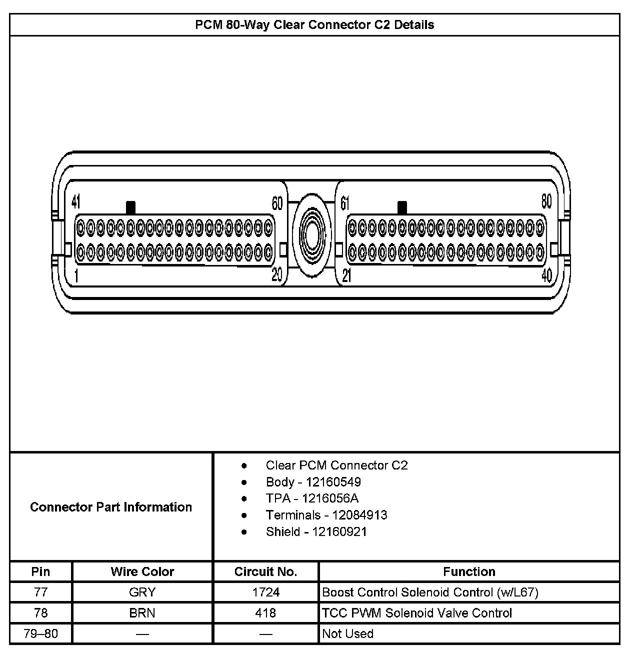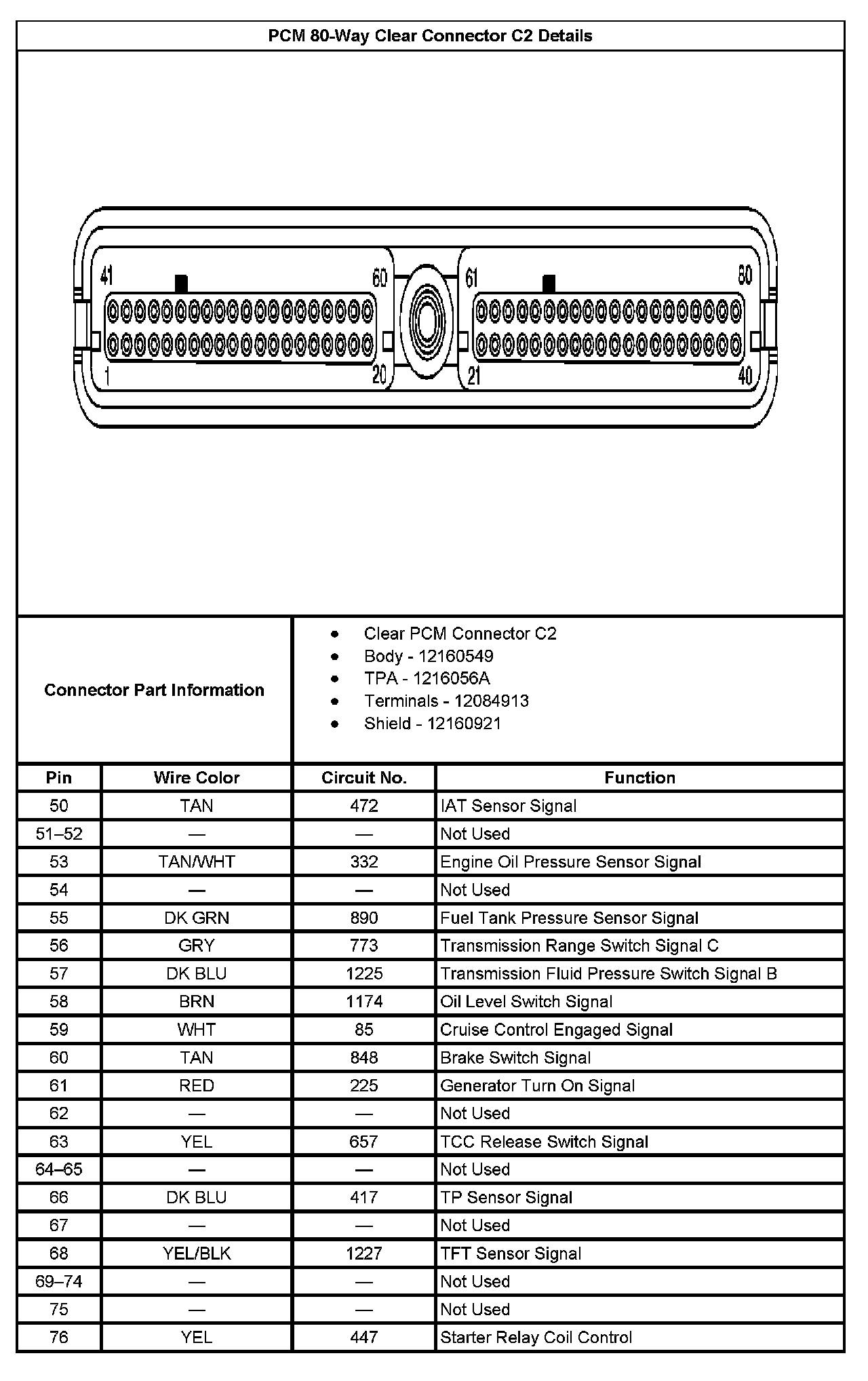 PCM 80-Way Clear Connector C2 Details Part 1: