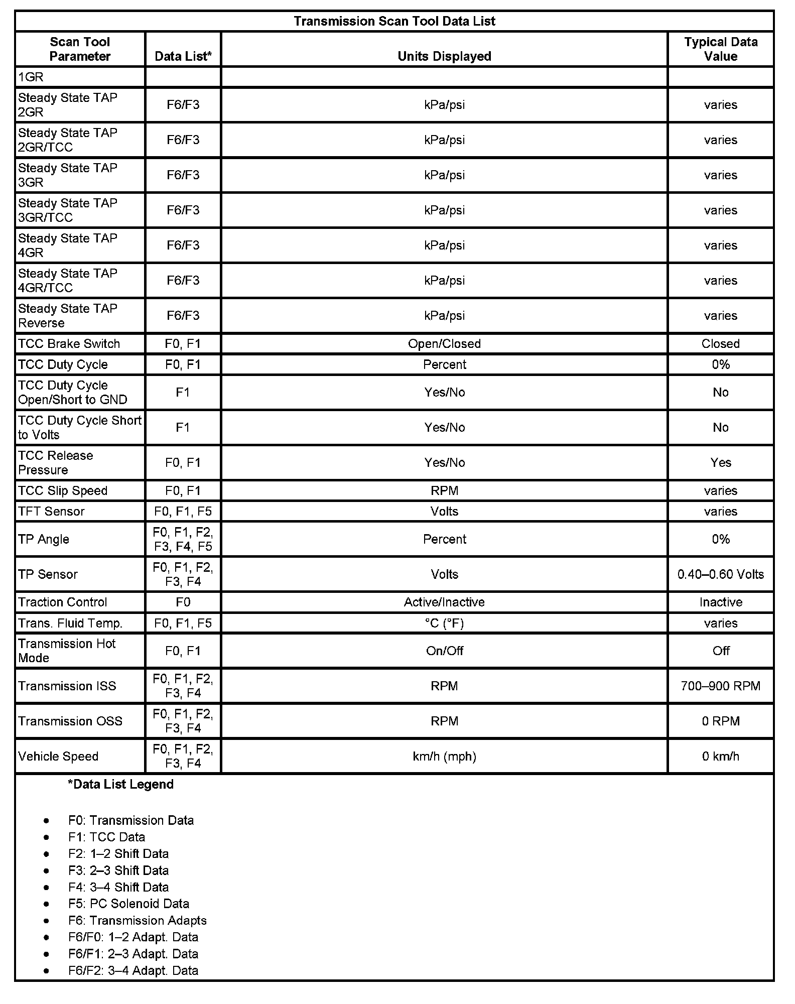 Only the parameters listed below are used in this manual for diagnosing. If a scan tool displays other parameters, the values are not recommended by General Motors for use in diagnosis.