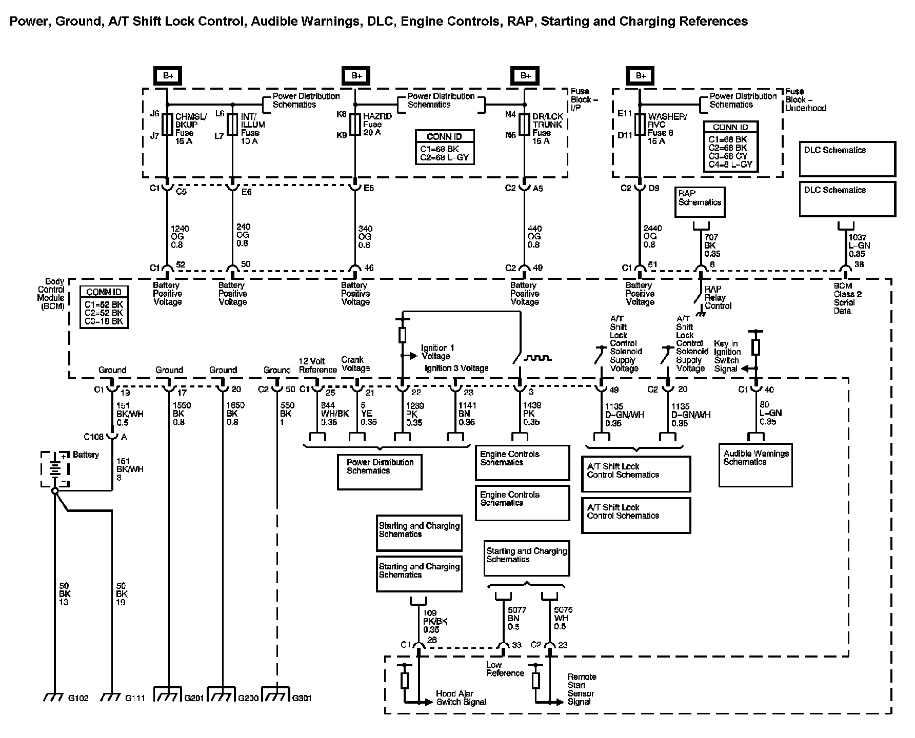 Locations: The locations for the Connectors, Grounds, Splices, and Grommets shown within these diagrams can be found via their numbers at Vehicle Locations. Locations