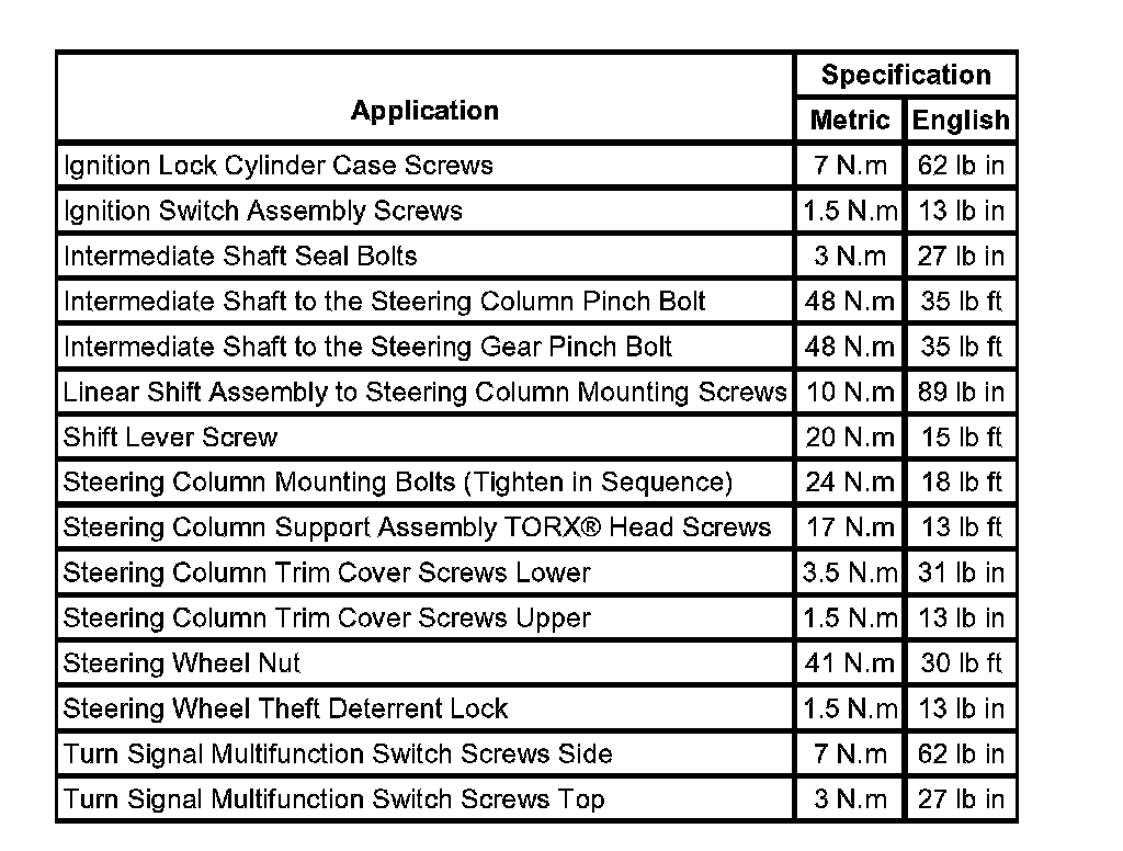 Fastener Tightening Specifications:
