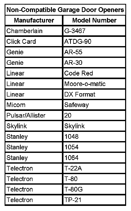 Non-Compatible Garage Door Openers: