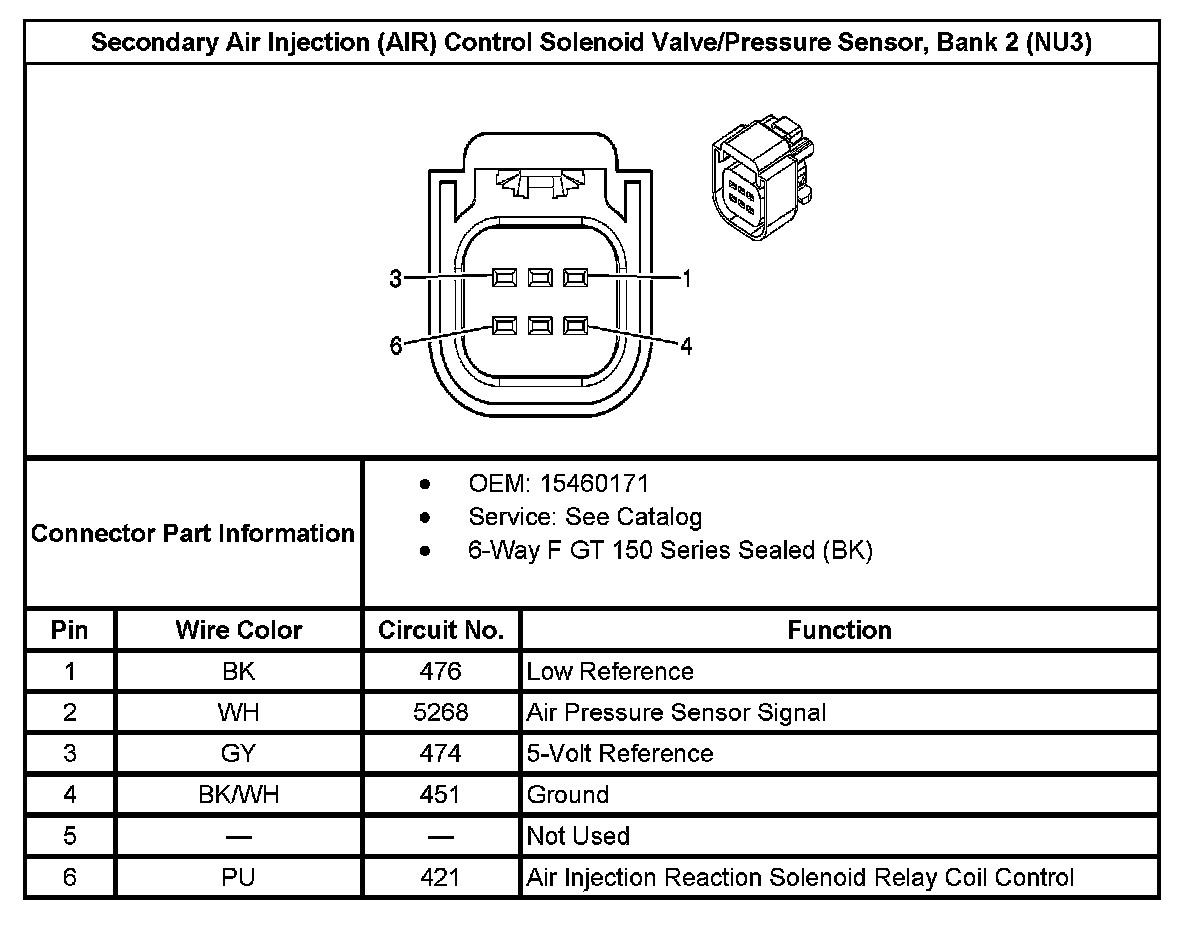 Secondary Air Injection (AIR) Control Solenoid Valve/Pressure Sensor, Bank 2 (With RPO Code NU3):