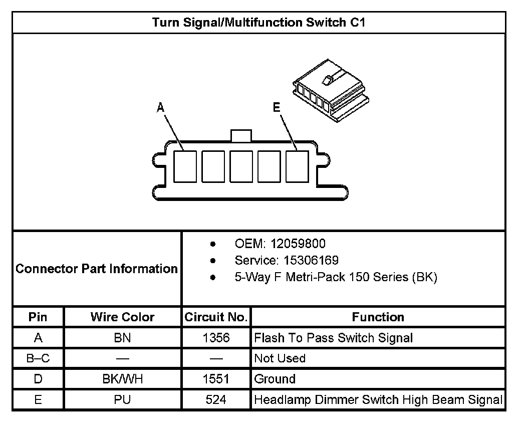 Turn Signal/Multifunction Switch C1:
