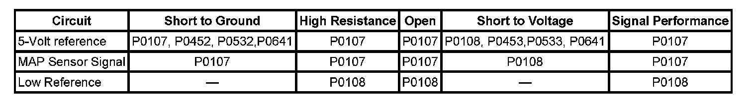 The manifold absolute pressure (MAP) sensor responds to pressure changes in the intake manifold. The pressure changes occur based on the engine load. The MAP sensor has the following circuits: