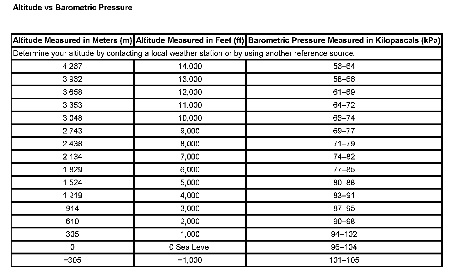 Altitude Vs Barometric Pressure: